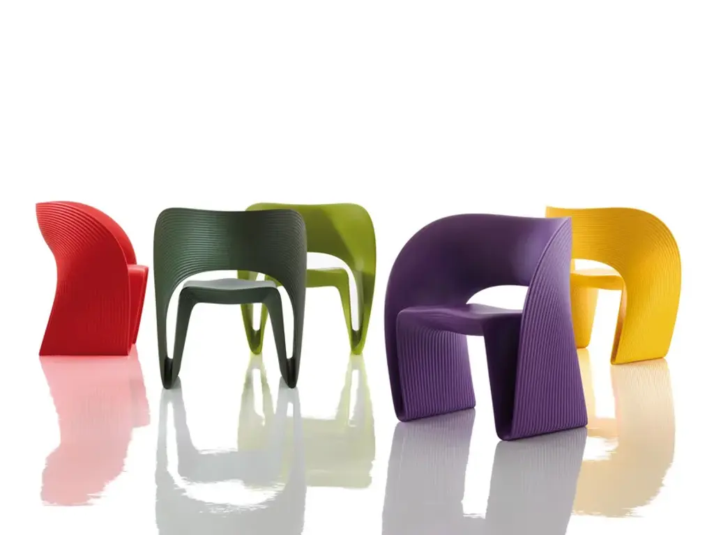 Low chair.Material: rotational-moulded polyethylene. Suitable for outdoor use.