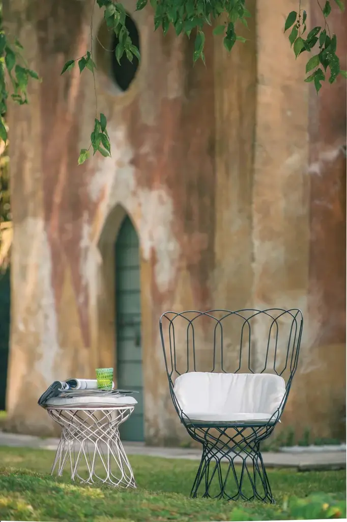 The Re-Trouvé collection originates in traditional forms rediscovered and reinterpreted with cleverness and originality by Patricia Urquiola. Re-Trouvé furniture conveys elegance and character in both classic contexts and contemporary settings. Geometric designs consisting of repeated diamond-shaped patterns create unusual and charming forms. Re-Trouvé blends naturally in every outdoor setting.