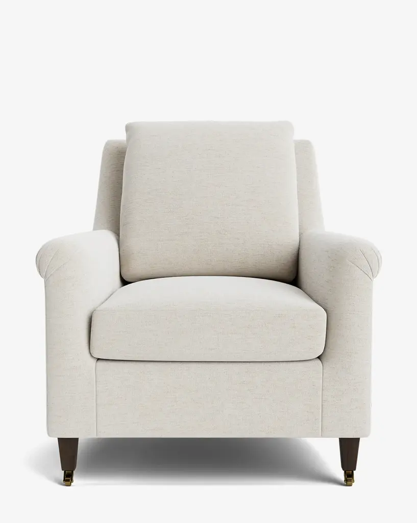 An updated take on a traditional design, our Reedley Lounge chair was designed with luxury in mind. Featuring a rolled arm detail and feather blend cushions held by its bench-made frame, the deep lounge chair is both sophisticated and inviting.