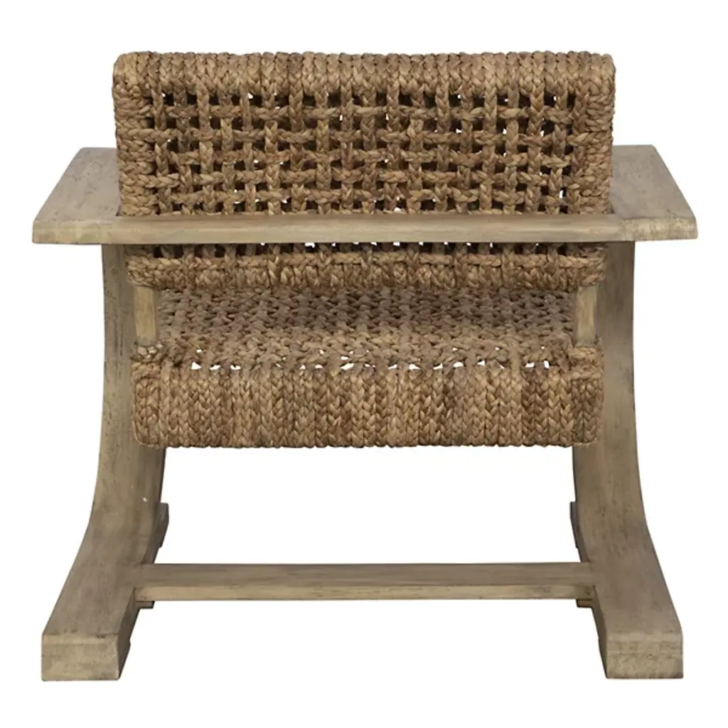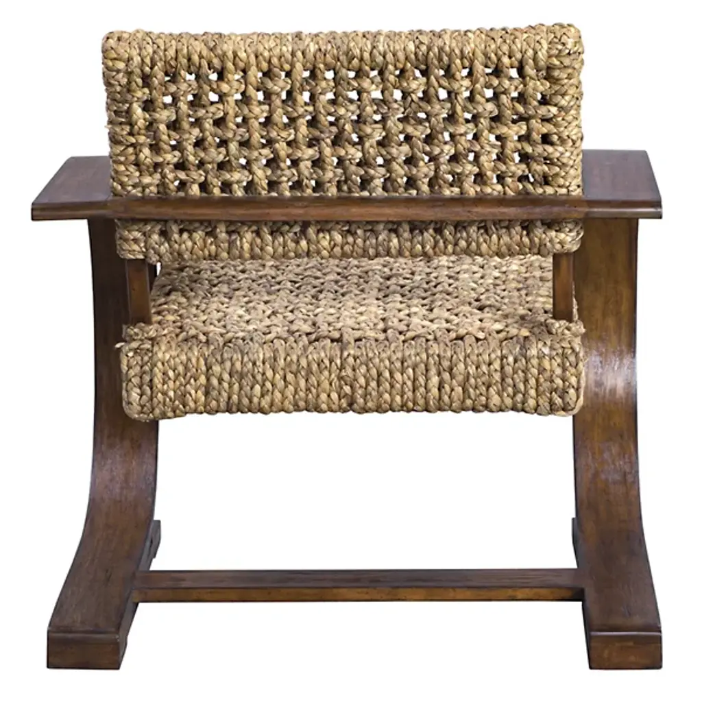 The Rehema Lounge Chair from Uttermost is a modern bohemian masterpiece that effortlessly blends relaxed style and considered comfort. Designed by Matthew Williams, this chair boasts a natural woven water hyacinth seat supported by a gracefully curved solid wood frame, offering flexible rocking and sturdy seating with ample coastal charm. Layered in mango veneer, it exudes a contemporary vibe with artisanal modern flair, making it a perfect addition to coastal and nautical-themed spaces.