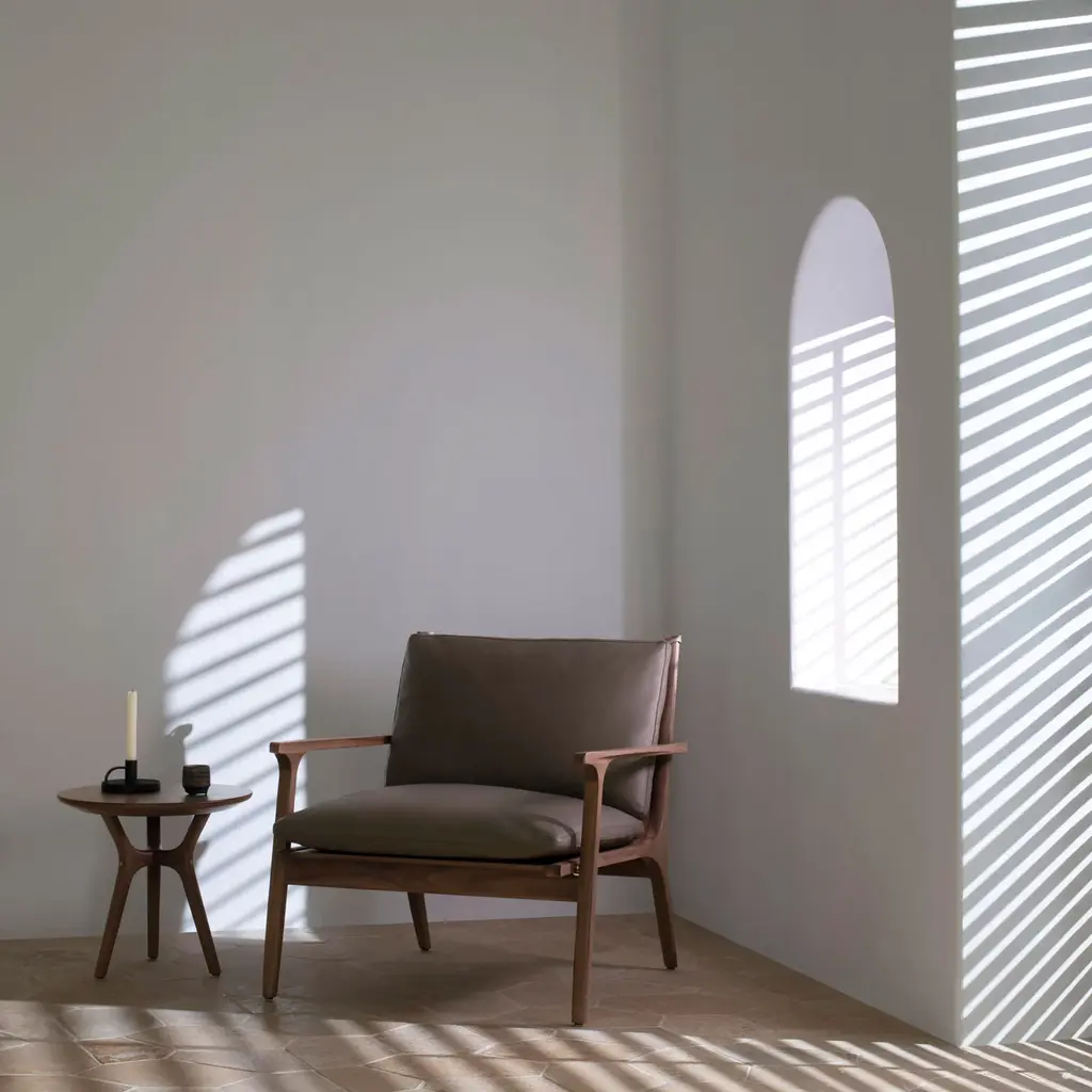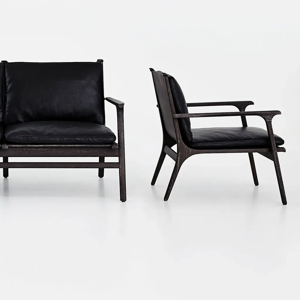 Sprawl out in comfort with the stylish larger Ren Lounge Chair. Space Copenhagen's Signe Bindslev Henriksen and Peter Bundgaard Rutzouof adapt their Nordic-influenced design to generously scaled proportions with luxuriously appointed back and seat cushions with lofty down fill. Rich leathery upholstery and a darkly stained ash frame define a sense of modern luxury that's apropos for residential and contract settings alike.