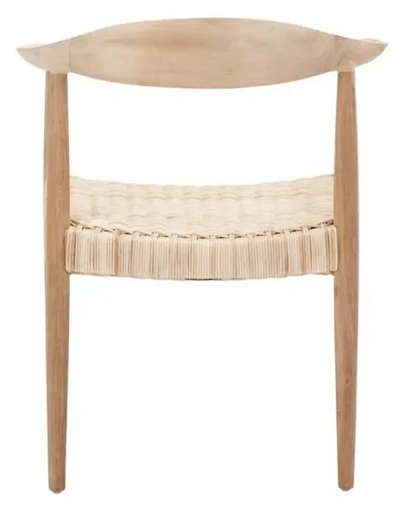 Retro charm meets coastal cool in this Renga Accent Chair. Renga’s iconic Mid-Century silhouette in rich natural teak is given a tropical twist with a matching natural woven rattan seat, while an open frame provides additional airy appeal. Although leather is one of the most durable upholstery materials, proper care is vital to maintain its appearance and performance. Dust weekly using a soft, clean cloth slightly dampened with distilled water. Blot spills immediately with a soft, clean absorbent dry cloth. Weight Capacity (lb): 275 Seat Dimensions (W x D x H in): 19.48 x 17.91 x 17.32 Assembly Required? No Materials: Teak, Rope Rattan