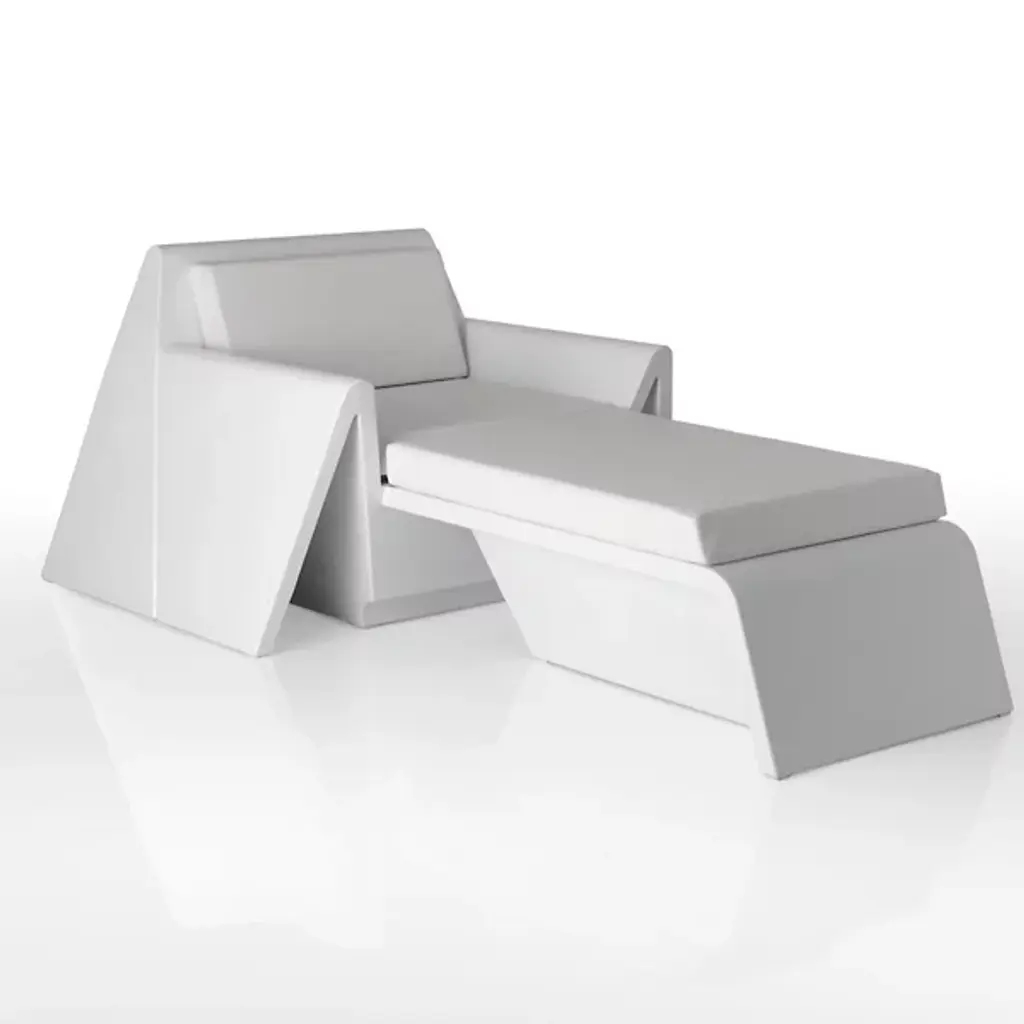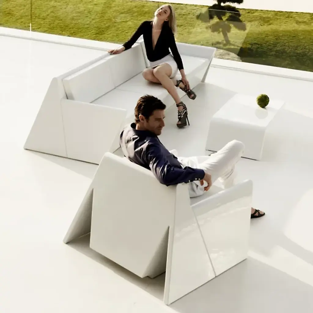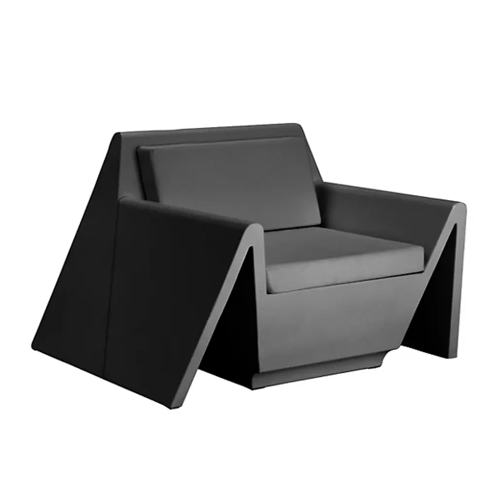 The Rest Outdoor Lounge Chair by Vondom has a cool, sculptural look that was inspired by the Japanese art of Origami, which creates different forms using folded paper. From designer A-cero, this piece is created from polyethylene resin using rotational molding to produce a structured lounge chair that is durable enough for outdoor use. Embracing a less is more philosophy, the modular build of this seat has a defined presence that adds a comfortable spot to lounge areas.