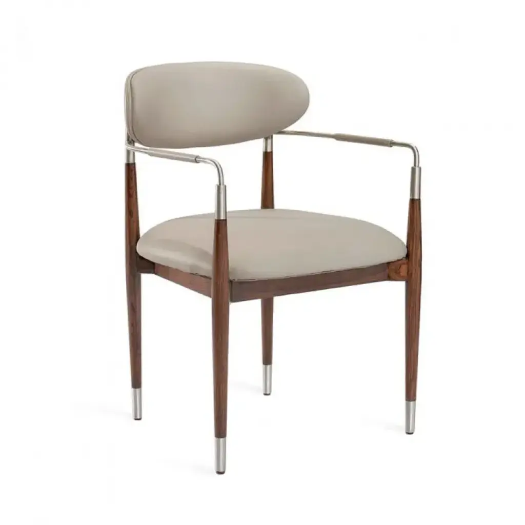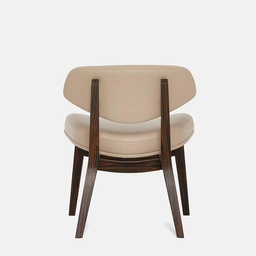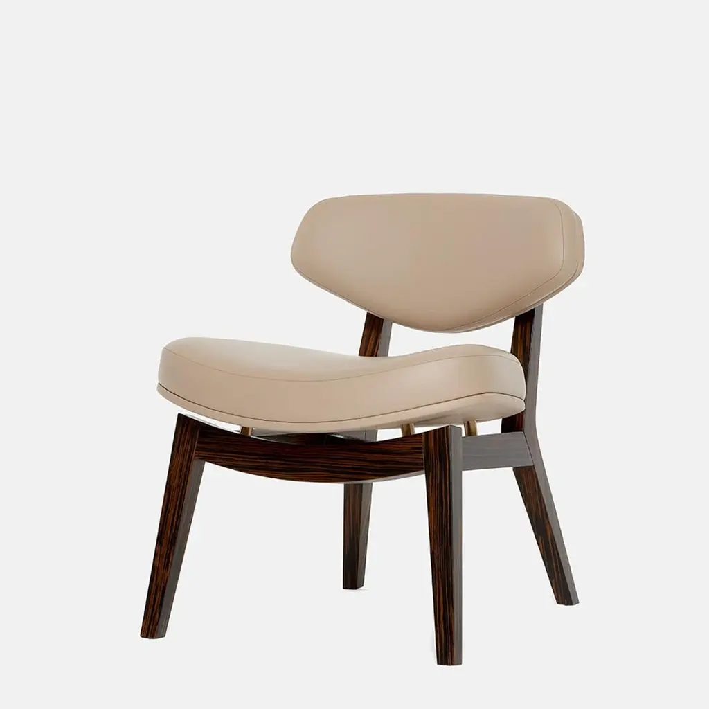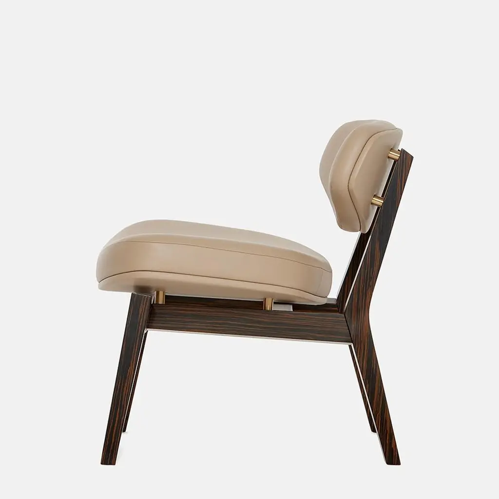 This handcrafted armchair embodies a seamless fusion of style and comfort. Its sturdy solid wood frame is complemented by luxurious leather upholstery in a sophisticated latte color. The legs, crafted from ebony wood veneer and finished with a matte varnish, along with the sleek brushed brass metal accents, highlight the armchair's elegant design. This combination of materials and finishes not only enhances its aesthetic appeal but also ensures durability and timeless elegance, making this armchair a standout piece in any interior setting.Frame in solid wood.Foam in 100% PU with BS standard fire specifications.Upholstery: Genuine LeatherHandmade in Europe.We will be glad to check with the factory’s technical team if sizes, finishes, and colors can be customized. We do our best to expedite production and to ship and deliver product within the listed lead time, however current lead times might be longer due to global shipping backlog and delays. These delays are out of our control and cannot be a reason to cancel an order.Our pricing includes all costs for international shipping to the U.S., as well as duties and customs clearance fees. Please be aware that local delivery within the U.S. is not included. We offer white glove, front door, and warehouse delivery options. For shipments outside the U.S., kindly reach out to us for a detailed quote.