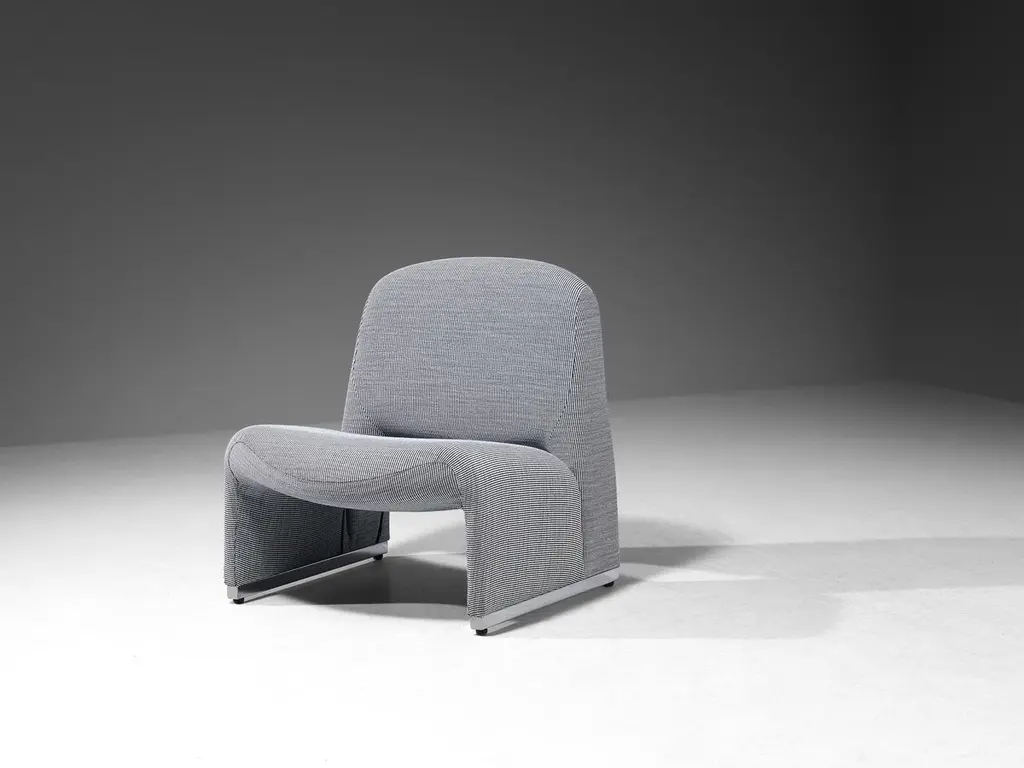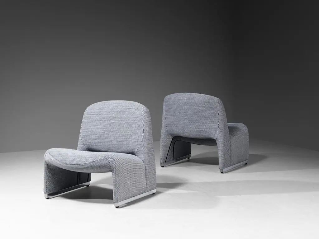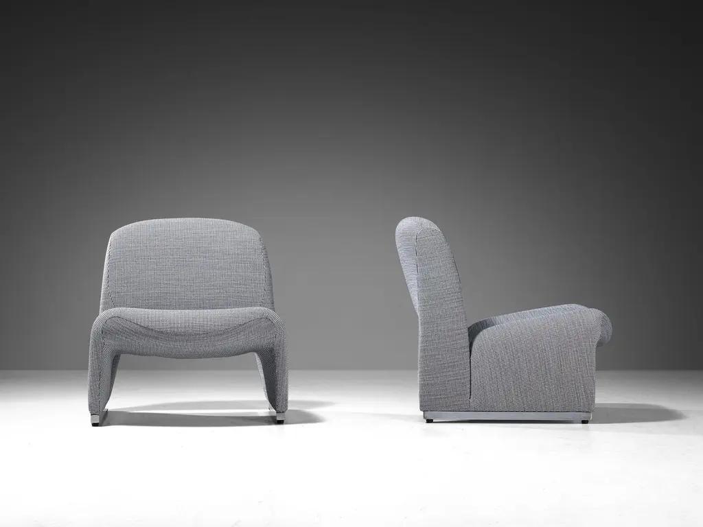 Lounge chairs, wool "Fuse" Raf Simons by Kvadrat, aluminum, Italy, 1970sThese lounge chairs strongly remind of Giancarlo Piretti’s ‘Alky’ lounge chair (1969), yet they feature characteristic differences. Whereas the ‘Alky’ lounge chair consists of one shell, these chairs have a beautiful gap between seat and backrest. Therefore, a more light and airy expression is evoked. Like Piretti, also the designer of this version finished the legs with an aluminum frame to provide a strong line and strengthen the vivid look.Please note that the depicted photographs of these chairs show the final result of what the item will look like after reupholstery. The price on offer is valid for this final result, including fabric and labor. The reupholstered item has a current lead-time of twelve to fourteen weeks and will be performed by our experience craftsmen and -women in our in-house restoration atelier. All to meet our high-quality and standards. For further questions please contact our design specialists regarding reupholstery and specific lead-time.The listed price is per item.