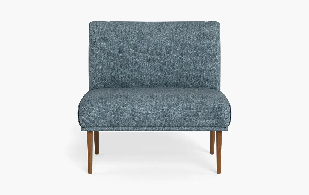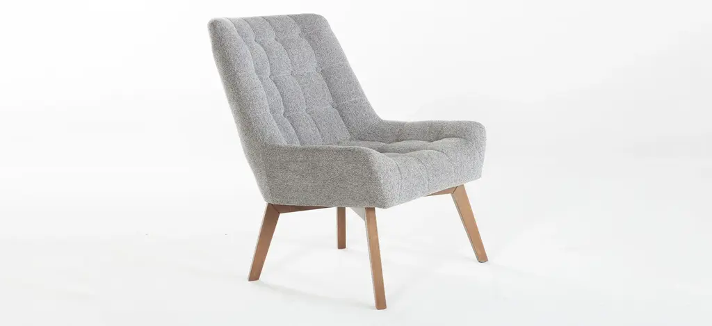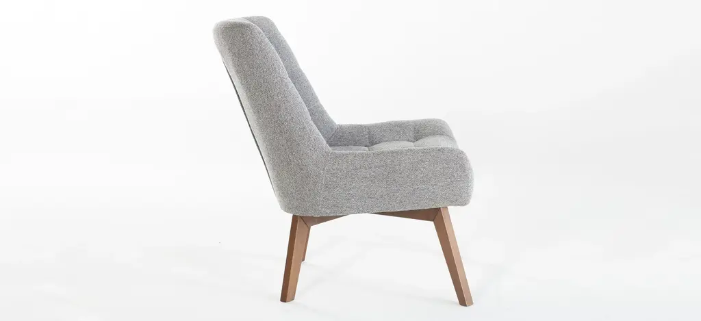 Mid-century aesthetic at its finest. The Revere accent chair transforms any space into a chic setting that welcomes good times and kicking it in style. This upholstered accent chair features top to bottom button-tufting on texture performance fabric available in four retro-inspired color options that pair well with all types of decor. An unexpected profile stands out in any room with super subtle wing arms and natural wood legs with an exposed crossbar base. This fully cushioned seat is complete with a slightly reclined back that puts you in the perfect position for total relaxation.