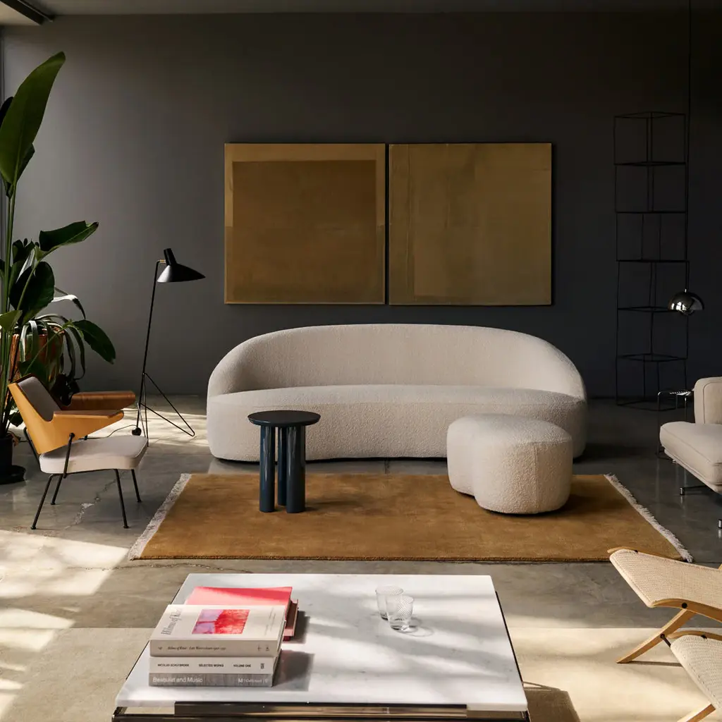Showcasing a soft, inviting character, the RFH Lounge Chair follows the same design principles as the RFH Armchair. Small in footprint, part of the chair's charm lies in its low and compact form, offering a lounge piece with a striking silhouette that can be placed in the most modest of spaces.