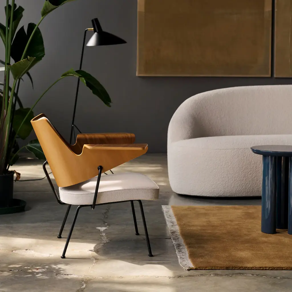 Showcasing a soft, inviting character, the RFH Lounge Chair follows the same design principles as the RFH Armchair. Small in footprint, part of the chair's charm lies in its low and compact form, offering a lounge piece with a striking silhouette that can be placed in the most modest of spaces.
