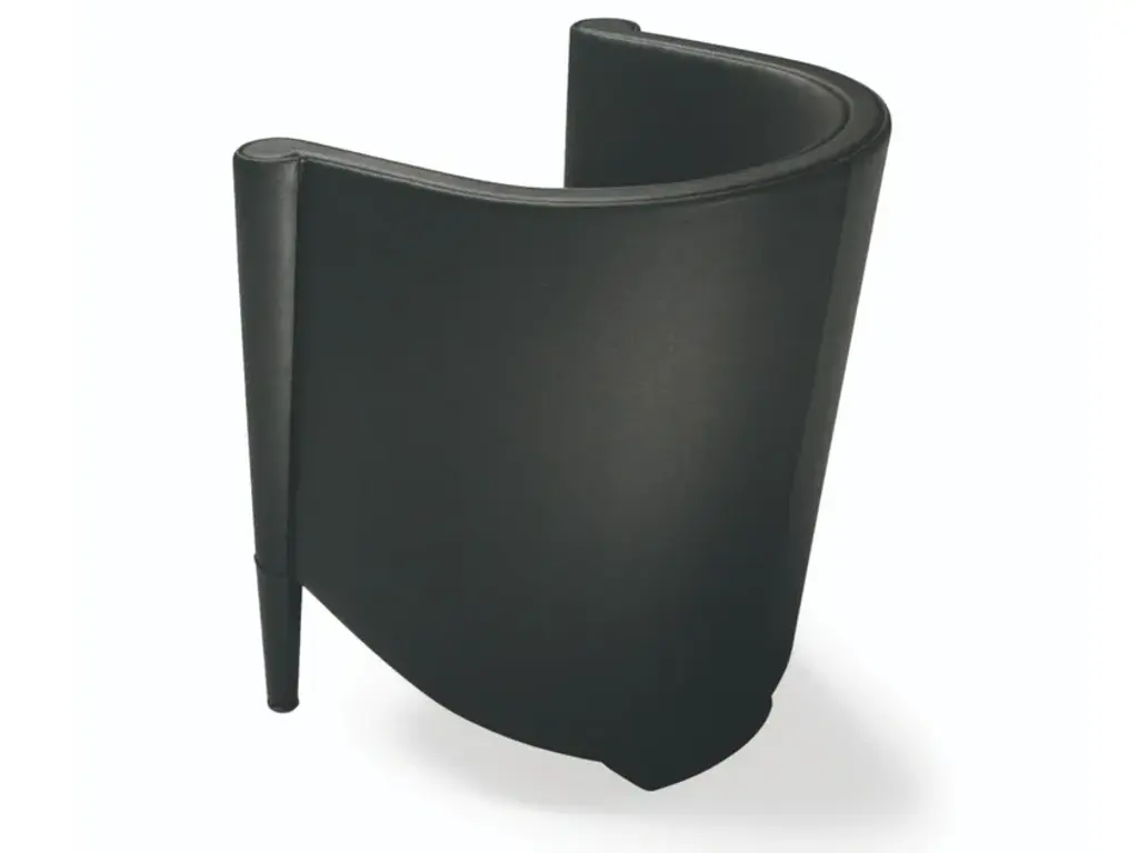 The small armchair Rich is in stress-resistant polyurethane foam in varied densities and polyester fiber on hardwood frame. Front feet of small armchair are leather or fabric covered beech; back foot, fixed to the frame, is beech. Glides are burnished steel. Chair legs are beech. Available in fabric or leather.Rich collection covers are not removable, with the exception of the cushions of RI0 version.