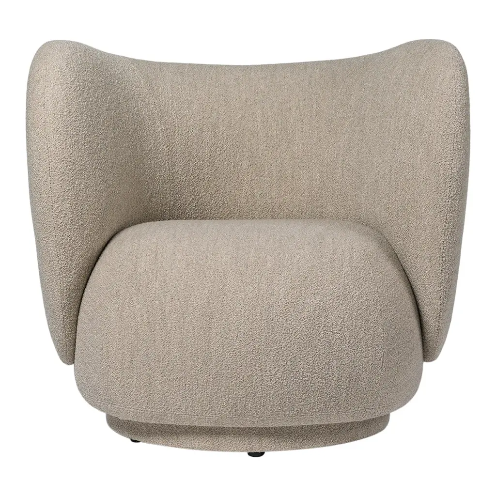 The Rico series welcomes curves and volumes into a classic design defined by soft lines and an embracing expression. Contrasting the sturdiness of the frame, the armchair has an upholstery of timeless, yet easeful boucle fabric, which is woven of uneven yarn to attain the rich, loopy texture of the surface. The curvaceous nature of the series adds a modern union of comfort and elegance to any room and makes you feel drawn into its motherly embrace. The brushed item is part of our made to order customization concept. The materials have been handpicked in order to create this custom piece – the only one of its kind. Please note it cannot be exchanged or returned.