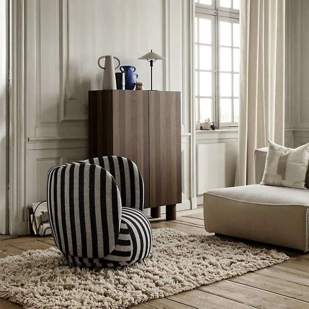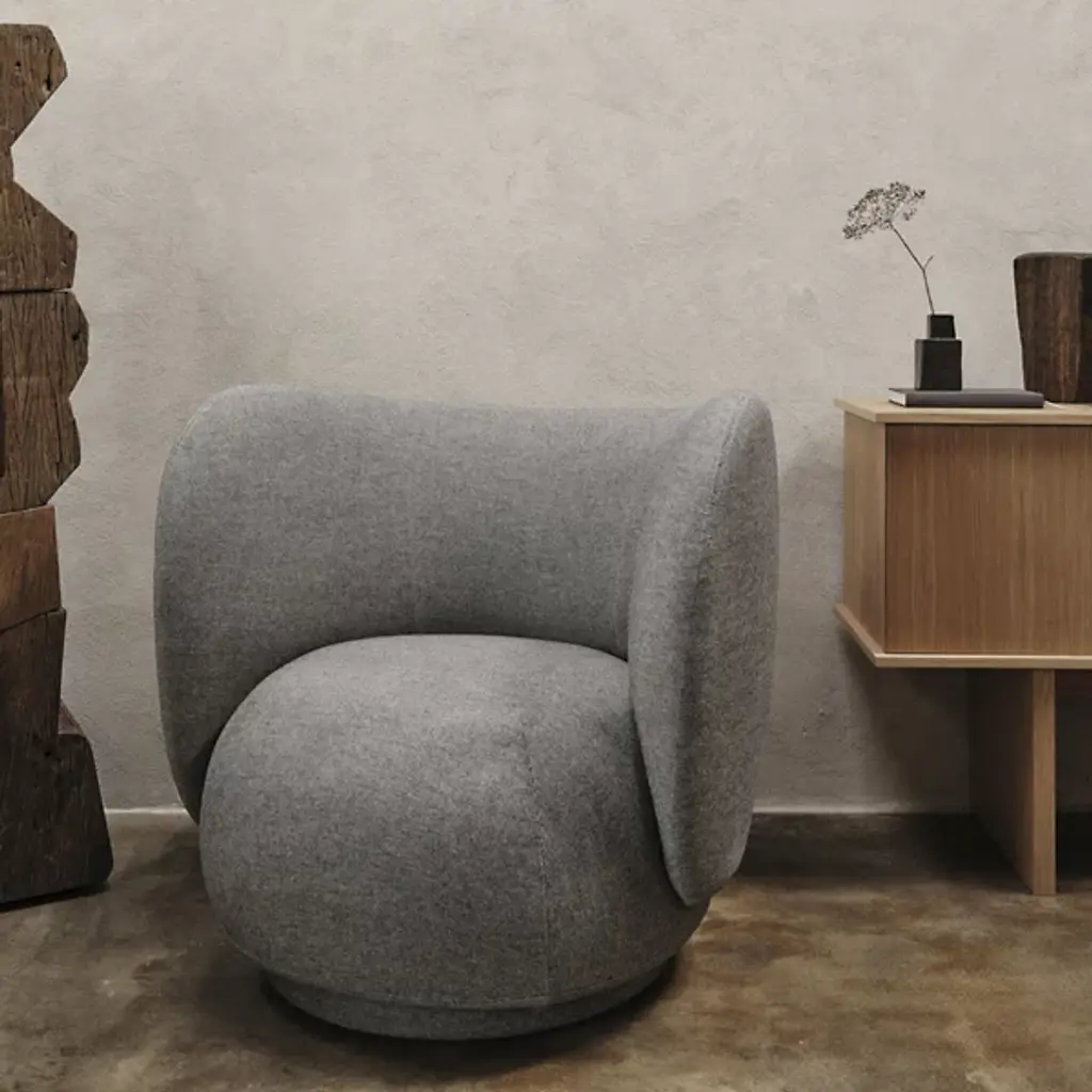 The Rico Lounge Chair from Ferm Living introduces curves and volume into a classic design characterized by soft lines and an inviting expression. Its curvaceous nature seamlessly blends comfort and elegance, which makes it a modern masterpiece. This piece is designed to draw you in with its warm and welcoming embrace. It provides a perfect union of style and relaxation that will enhance any living space with its sophisticated appeal.