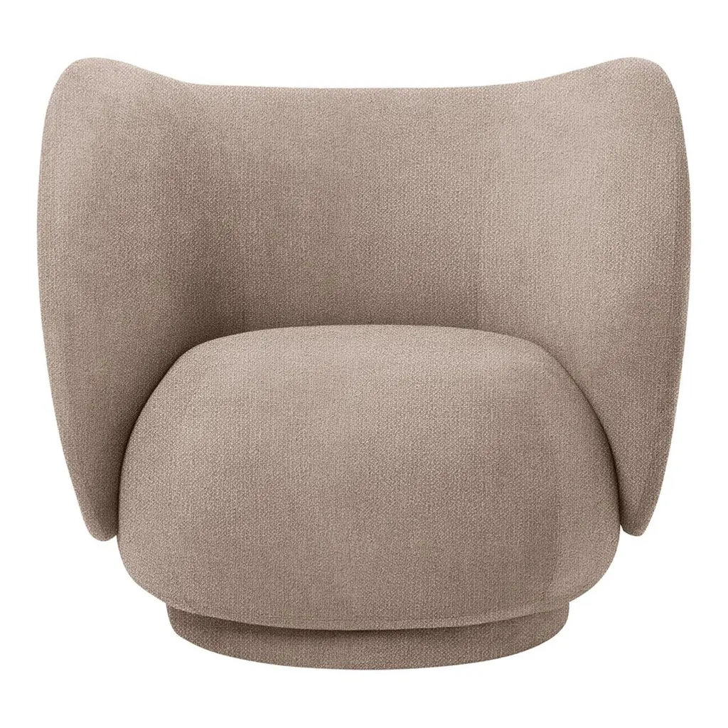 The Rico series welcomes curves and volumes into a classic design defined by soft lines and an embracing expression. Contrasting the sturdiness of the frame, the armchair has an upholstery of timeless, yet easeful boucle fabric, which is woven of uneven yarn to attain the rich, loopy texture of the surface. The curvaceous nature of the series adds a modern union of comfort and elegance to any room and makes you feel drawn into its motherly embrace. The brushed item is part of our made to order customization concept. The materials have been handpicked in order to create this custom piece – the only one of its kind. Please note it cannot be exchanged or returned.