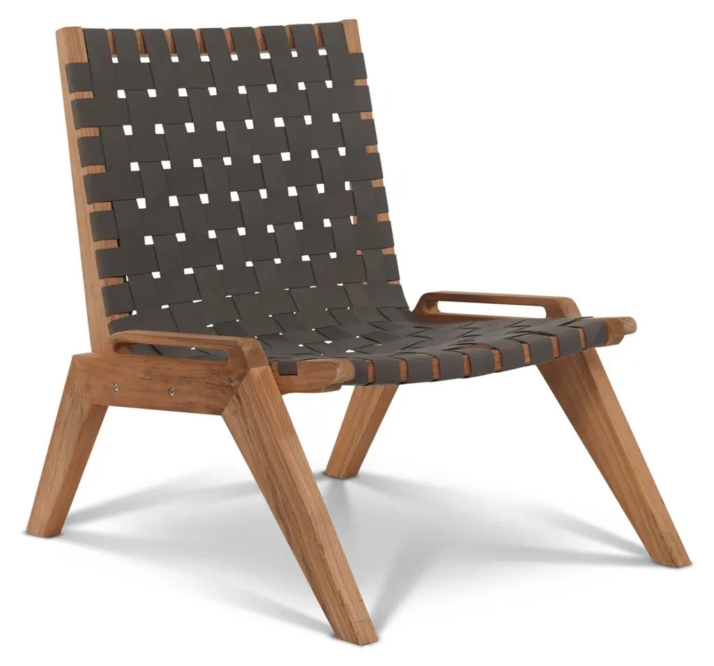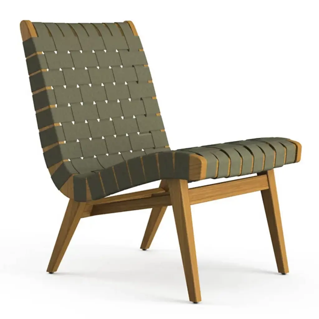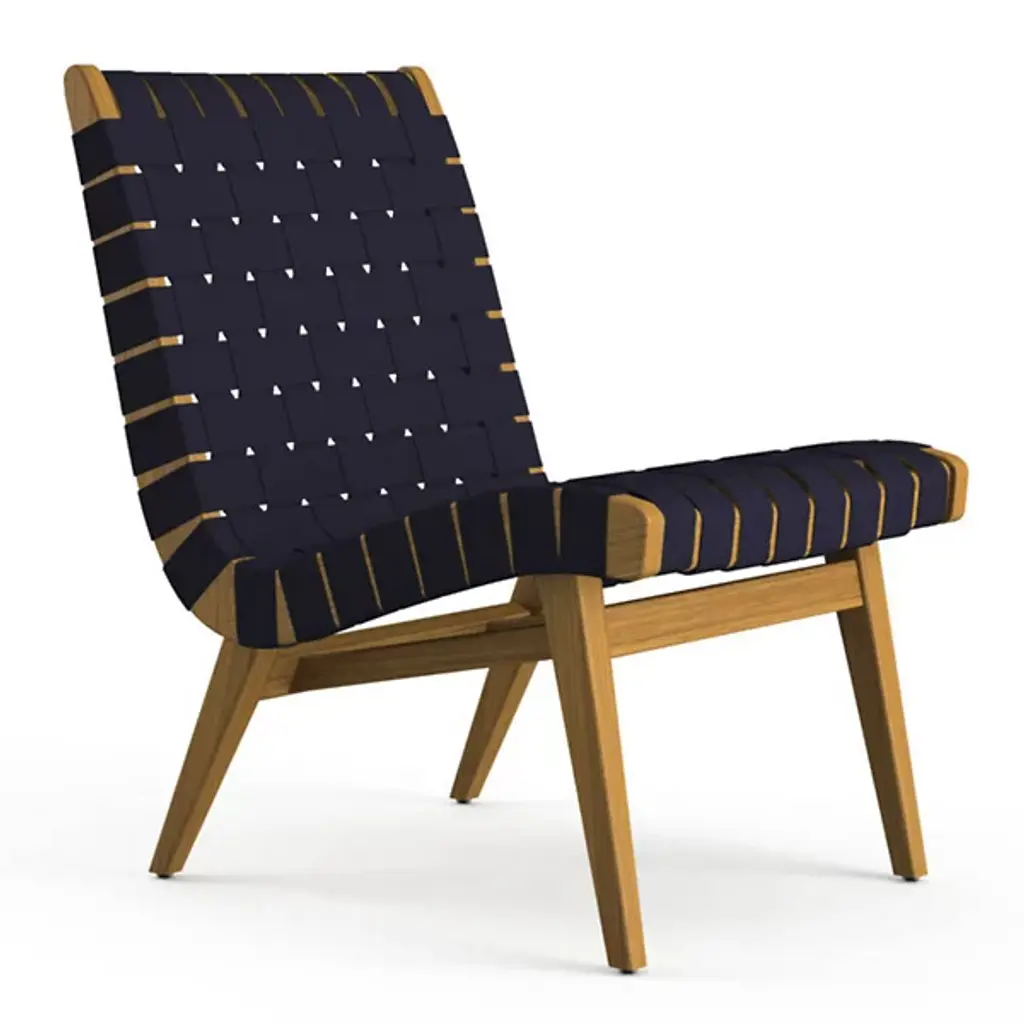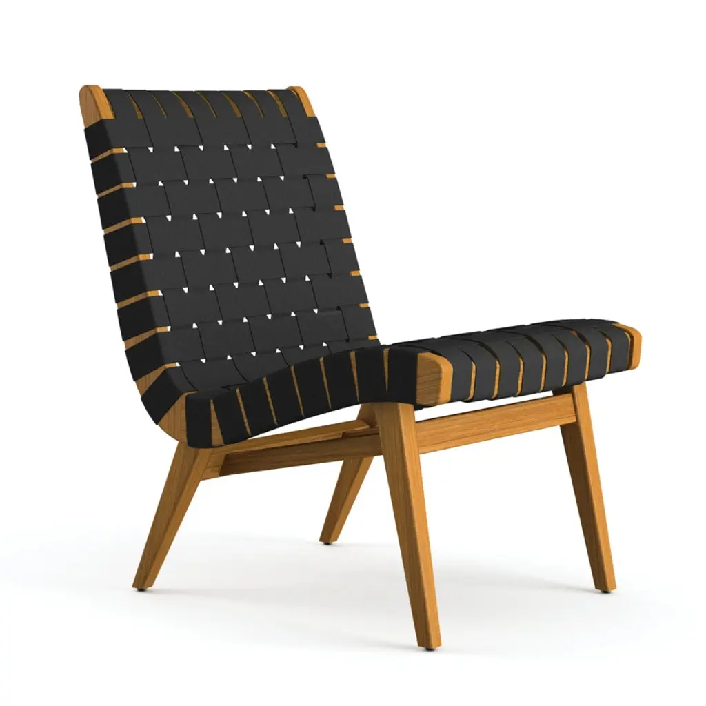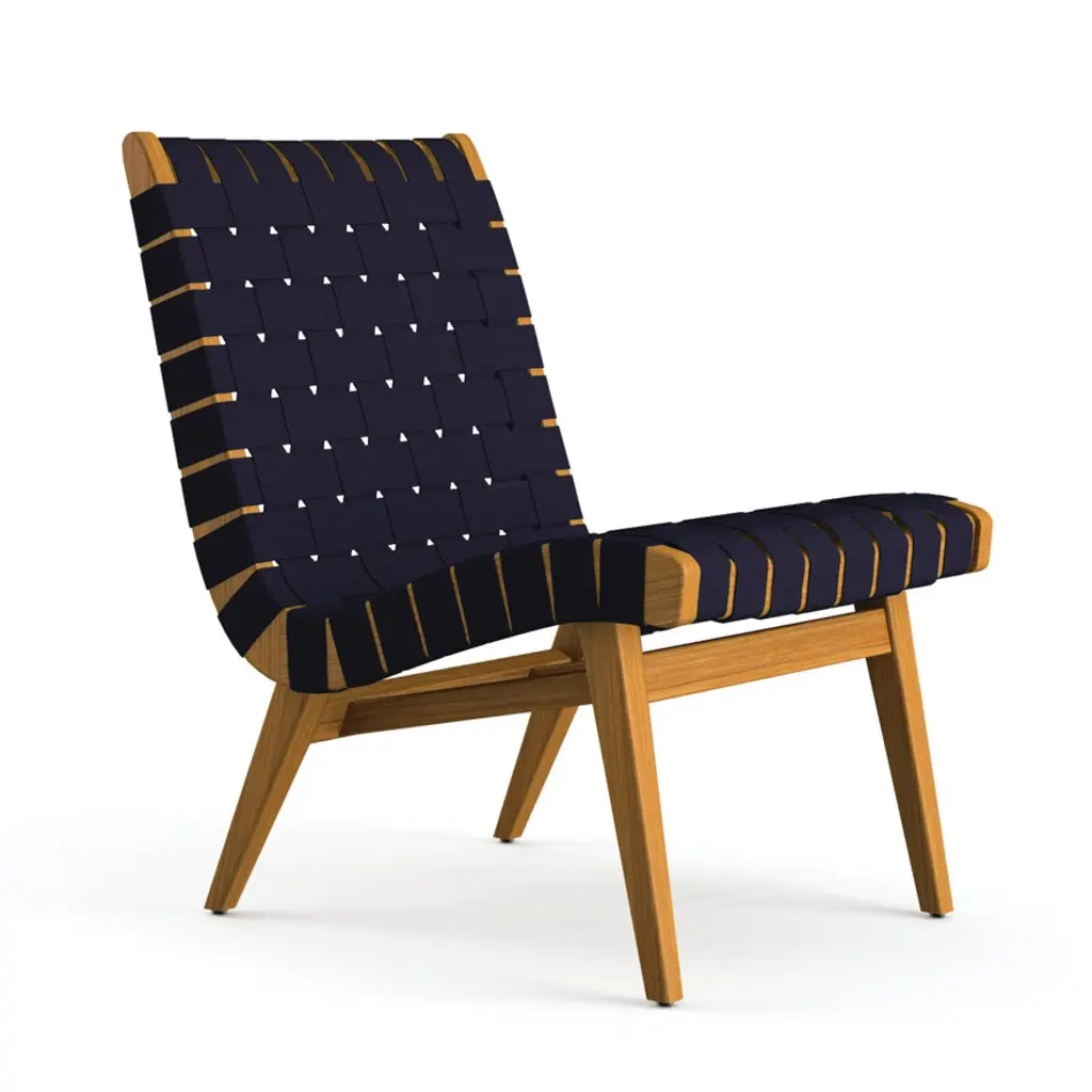 Designed in 1942, the Risom Lounge Chair was one of the first pieces commissioned by Knoll, and three-quarters of a century later, the company expanded the collection for outdoor use. An oiled teak frame and durable Sunbrella webbing have readied this classic for a life outside.
