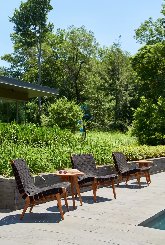 Described as good, honest furniture design, the Risom Collection helped establish Knoll as an early source of modern design in America. Three-quarters of a century later, selected products from the original collection have been re-engineered for outdoor use. Oiled teak frames and Sunbrella® webbing ready these classics for a life outside.