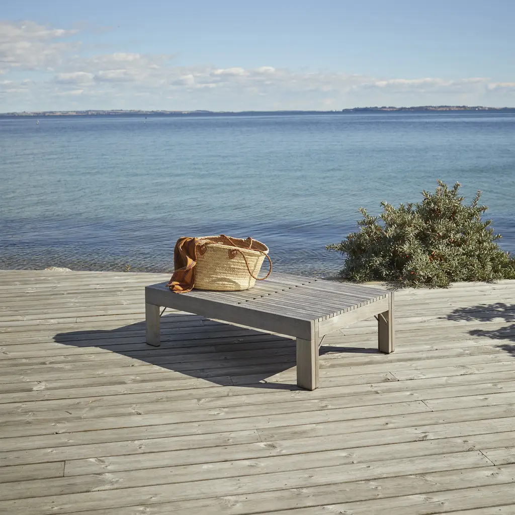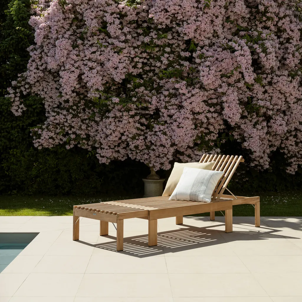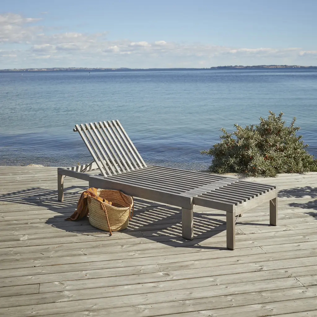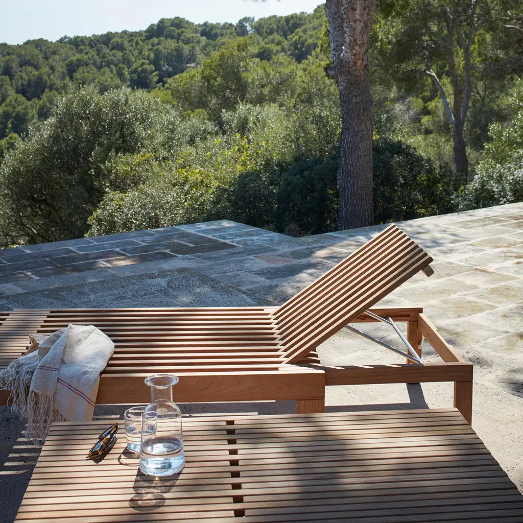 Crafted from naturally weather resistant, 100% teak wood the Riviera Sunbed from the Skagerak Collection by Fritz Hansen is an adjustable piece built with bright days and comfort in mind. Featuring an expandable design, this piece serves adjusts width-wise to act as a bench, a coffee table or lounge chair. Top with weather-proof cushions and your favorite soft towel and you've got the perfect place to spend a hot summer's day. Highlights