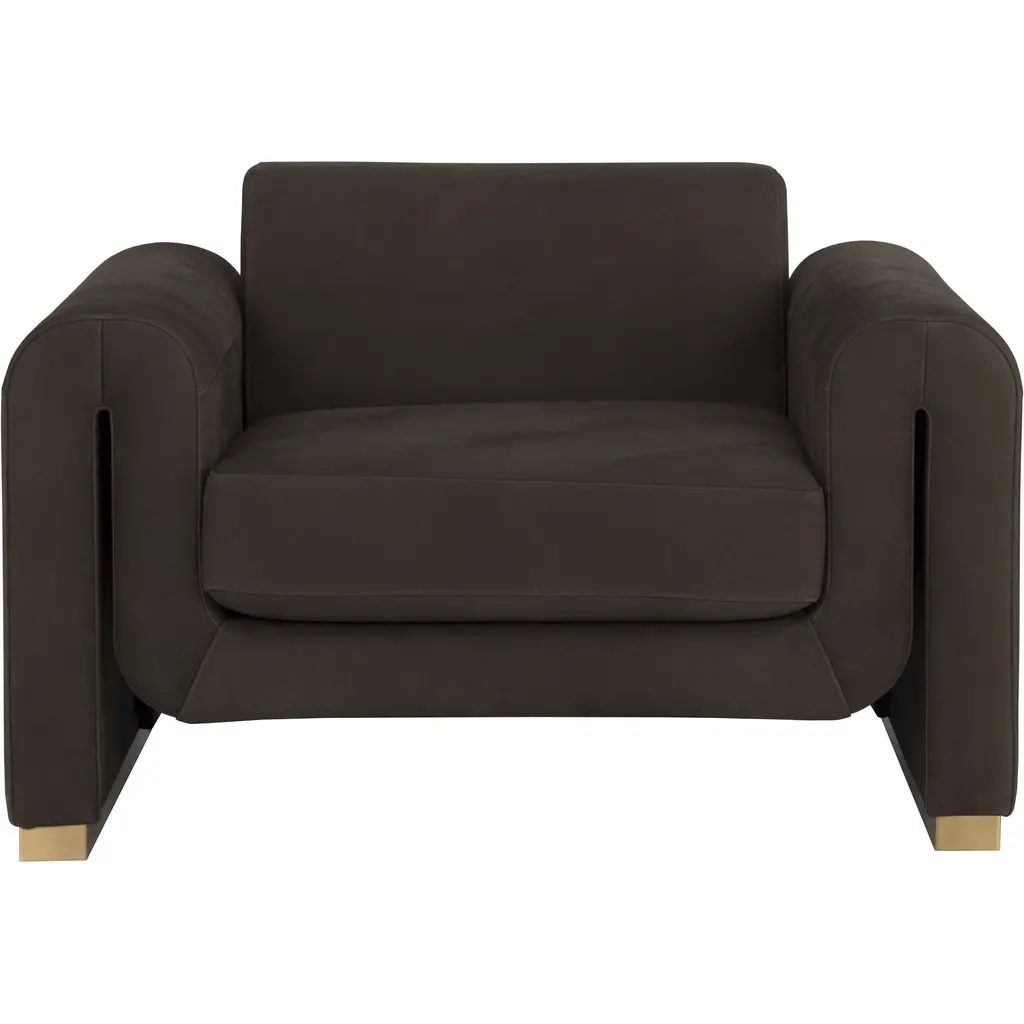 Romer Brushed Gold / Nubuck Cocoa Leather Armchair