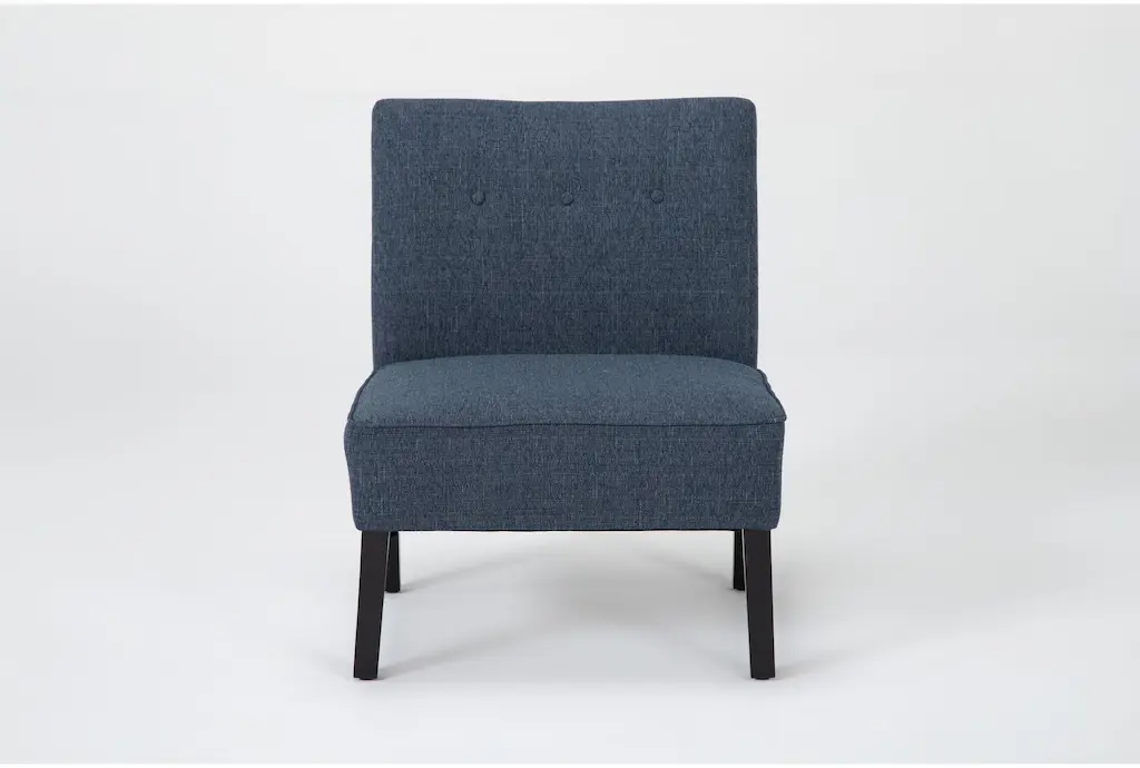 The Rosie Denim Blue Fabric Armless Accent Chair brings streamlined elegance to any space. Its clean, tailored upholstered design features button tufting and a rich denim blue fabric that complements both contemporary and traditional décor. This design is the perfect bedroom chair, reading chair, club chair or accent chair for living room. You'll love the grounded color palette, which favors earth tones.
