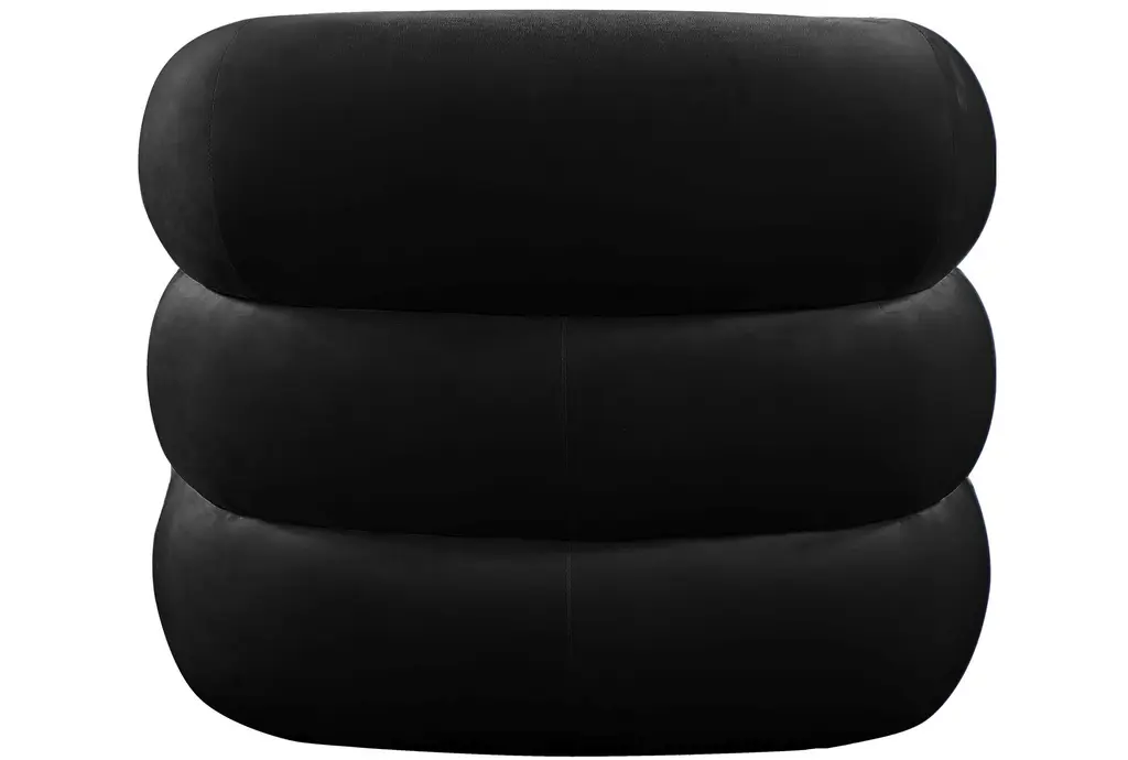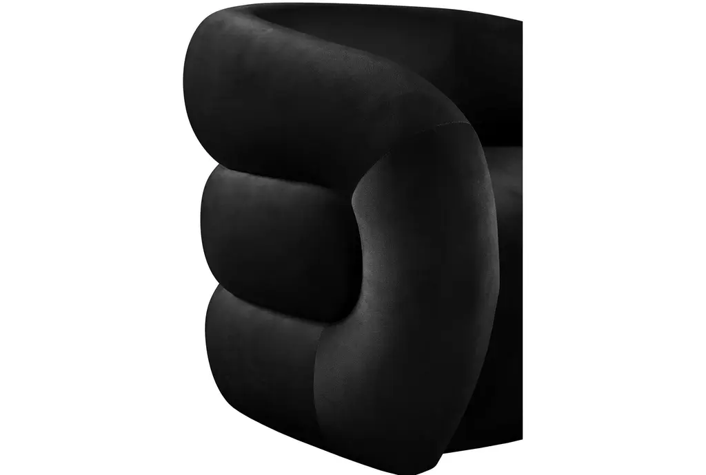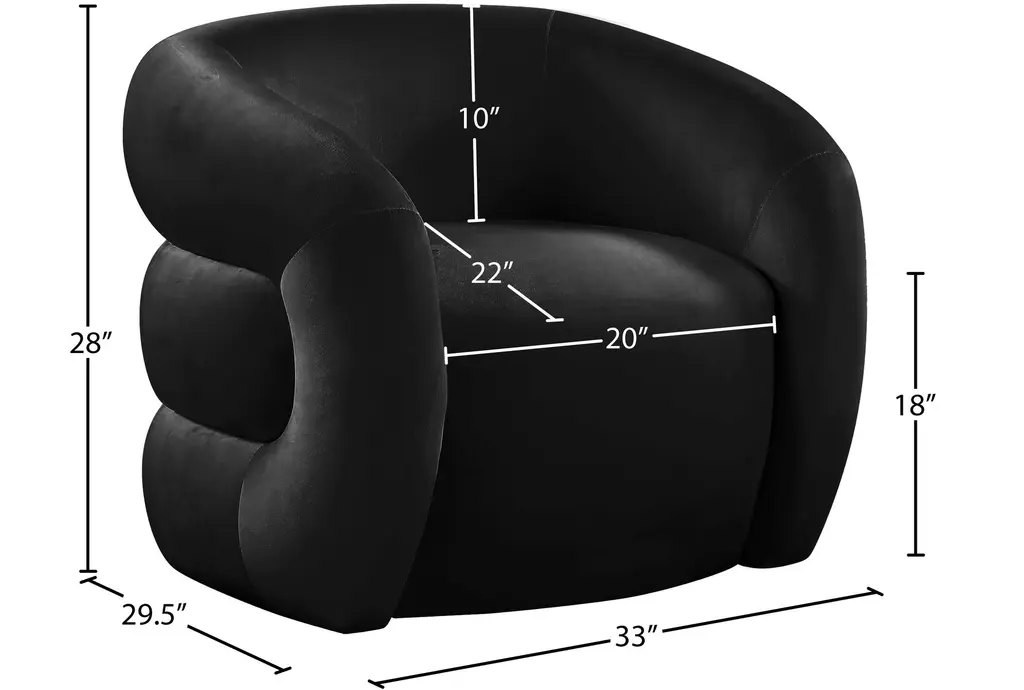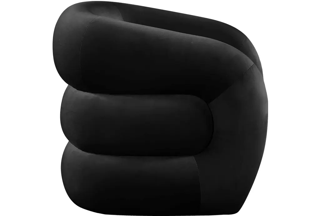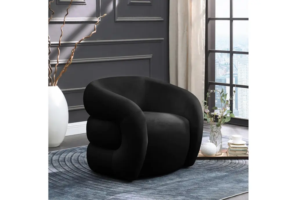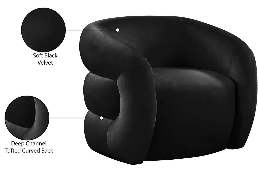The Roxbury Black Velvet Accent Chair is a stunning addition to any modern living space. Its luxurious black velvet upholstery and deep channel tufted curved back offer both comfort and style. This contemporary design piece is perfect for adding a touch of elegance to your home.