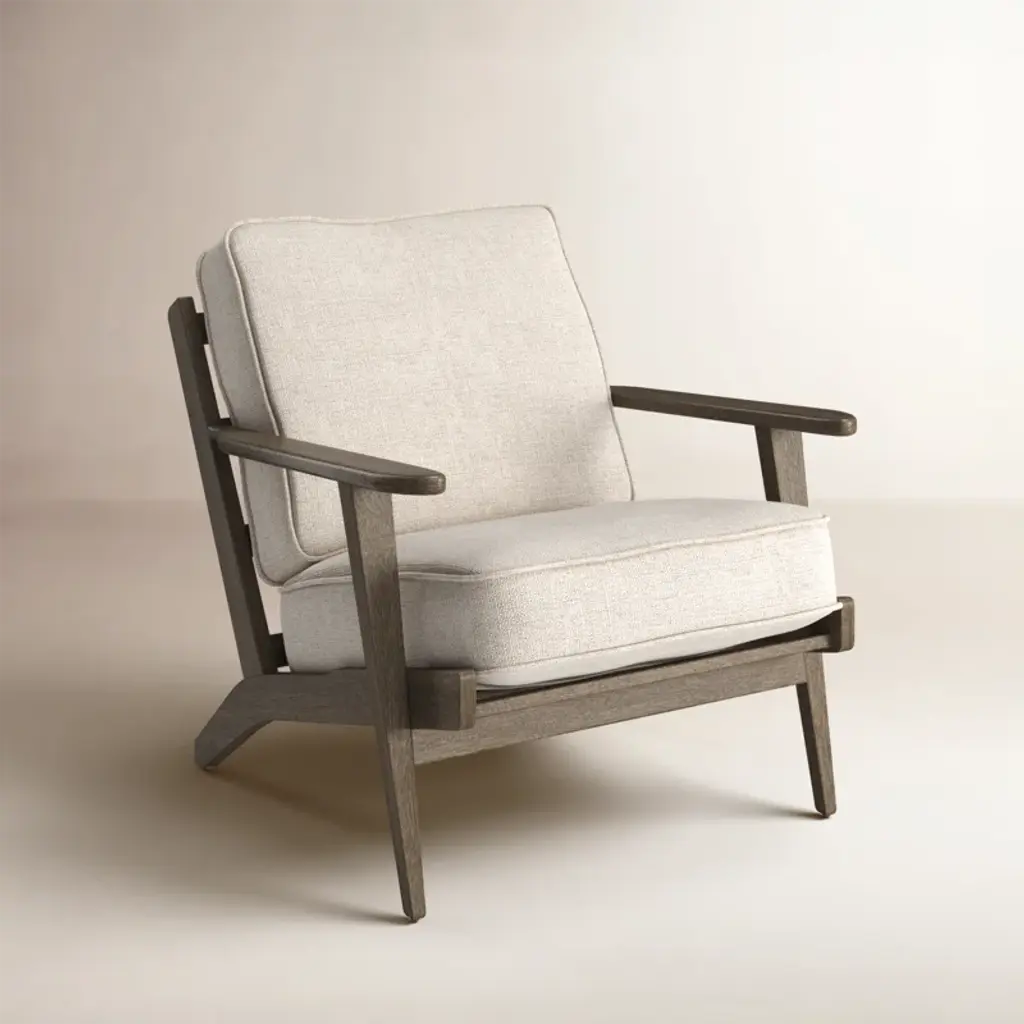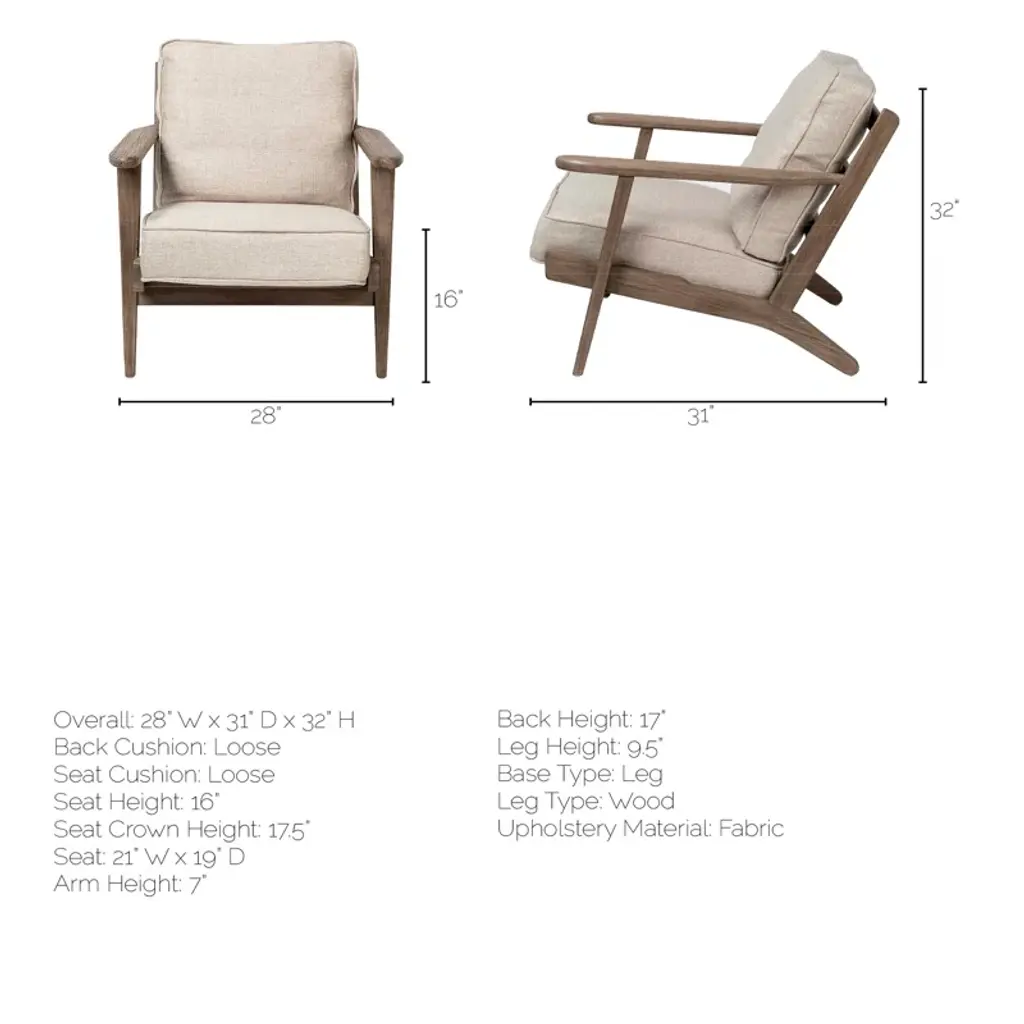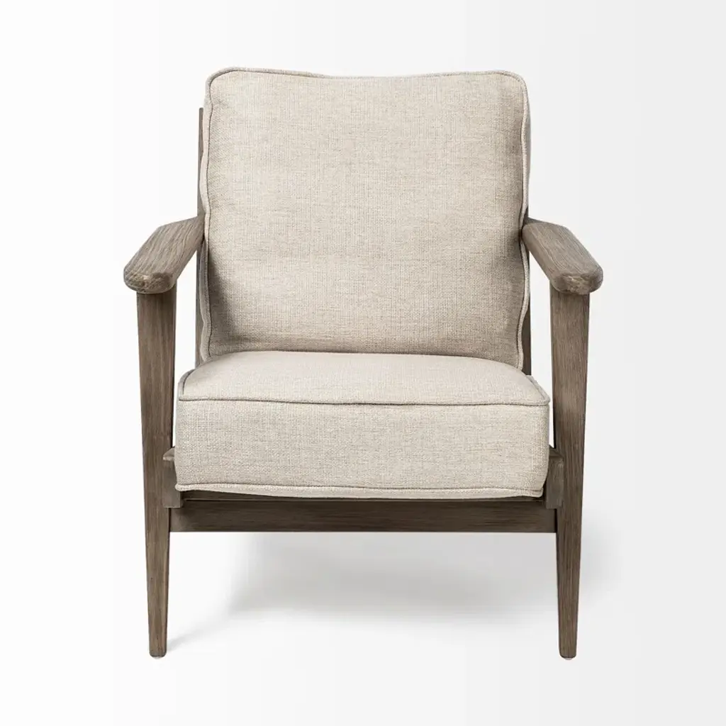The soft fabric seat is rested atop a sturdy beechwood frame with a slight recline to it for the most exceptional seating experience. The light-honey-brown colored wooden frame not only stabilizes the chair but also adds to its visuals, ensuring that it is a head-turner in your living room.