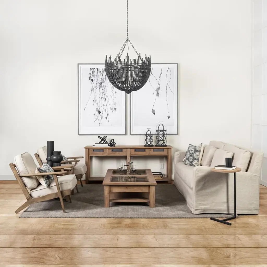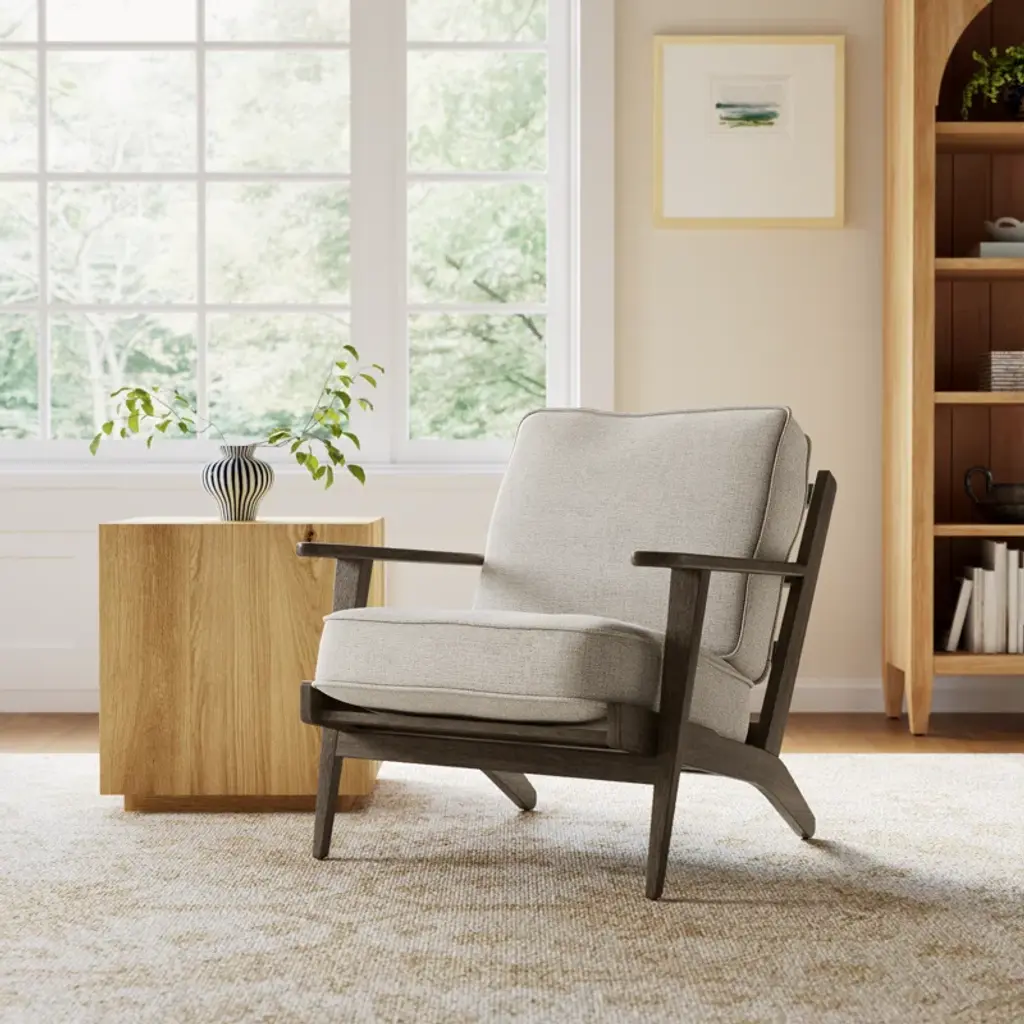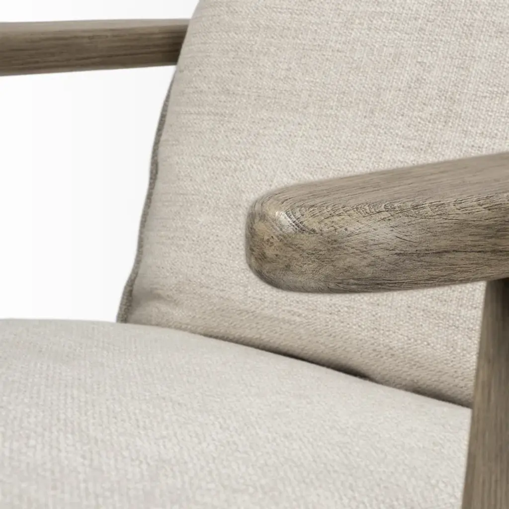 The soft fabric seat is rested atop a sturdy beechwood frame with a slight recline to it for the most exceptional seating experience. The light-honey-brown colored wooden frame not only stabilizes the chair but also adds to its visuals, ensuring that it is a head-turner in your living room.