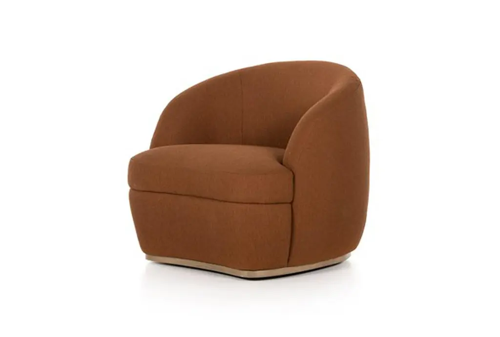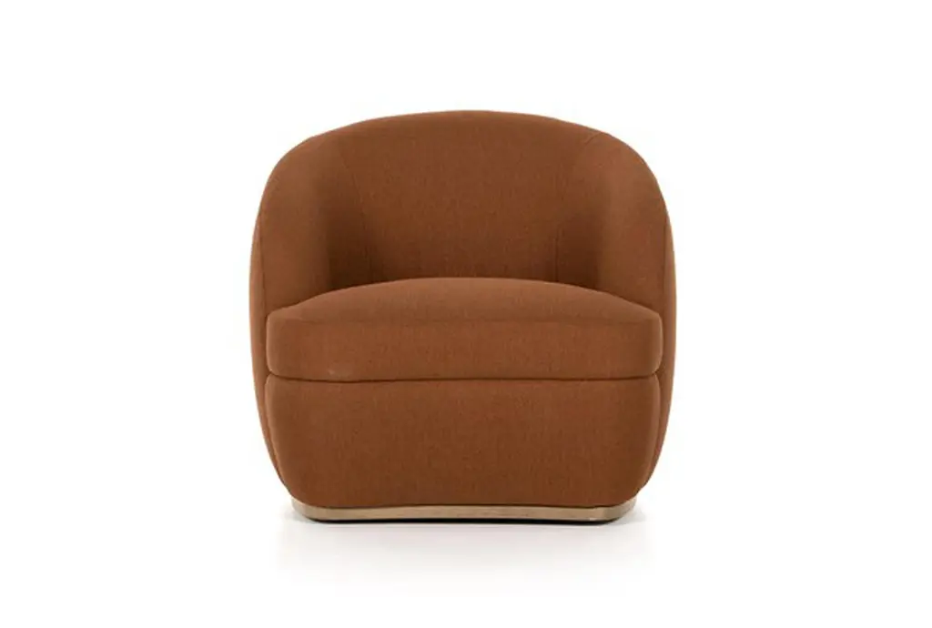 Rust Swivel Accent Chair With Oak Base