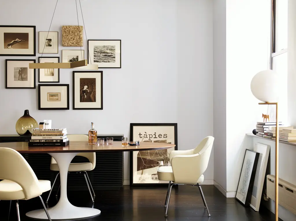The Saarinen Executive Chair (1946) was originally made of fiberglass but was later updated in polyurethane. The feel remains unchanged as the molded shell flexes slightly with the sitter. The contoured plywood seat is supported by metal or wood legs. This chair is Intertek Clean Air Certified for its use of low-emitting products. Manufactured by Knoll according to the original and exacting specifications of the designer. Backed by a five-year manufacturer's warranty.