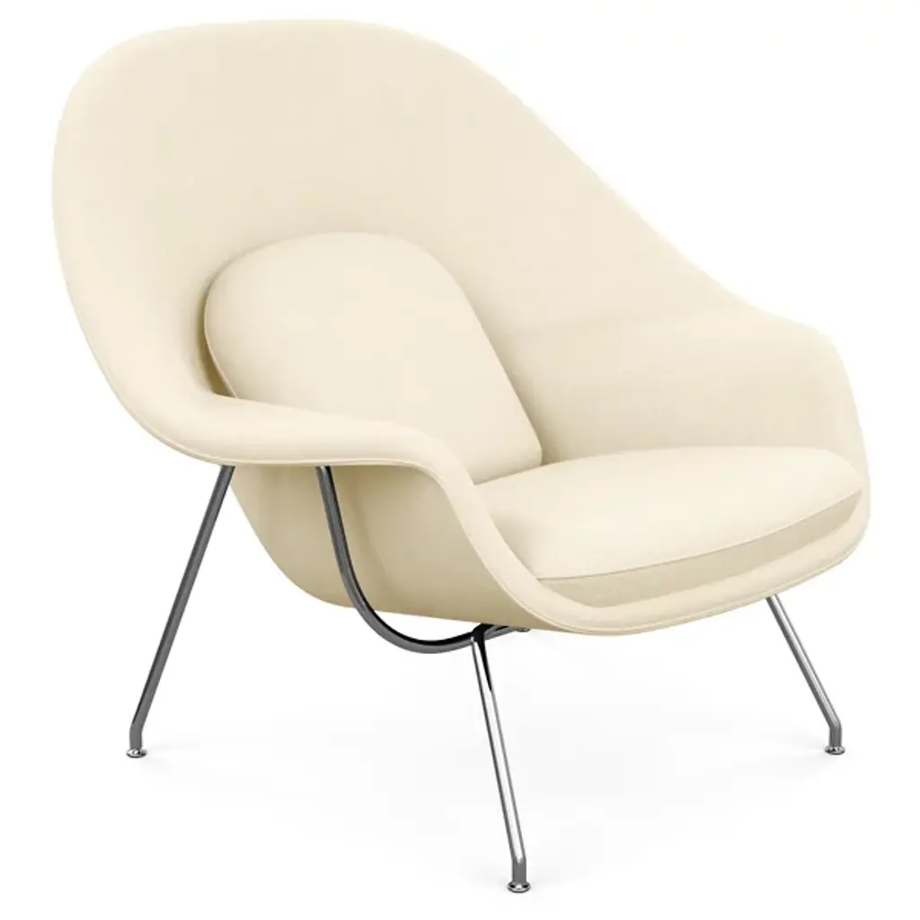 Florence Knoll challenged legendary designer Eero Saarinen to create a chair that she could curl up in that provides a supreme amount of comfort. The result: the Saarinen Womb Chair. Designed in 1948, this timeless piece was crafted in a way to provide a sense of comfort and security. Its unique seat is created from a molded, reinforced fiberglass shell which is layered in dense foam and topped with separate seat and back cushions in polyester fiver over a foam core. Its stable look is finished with a steel rod base. Ideal for any living room, guest room or bedroom, choose the aesthetic that works best for your modern home.
