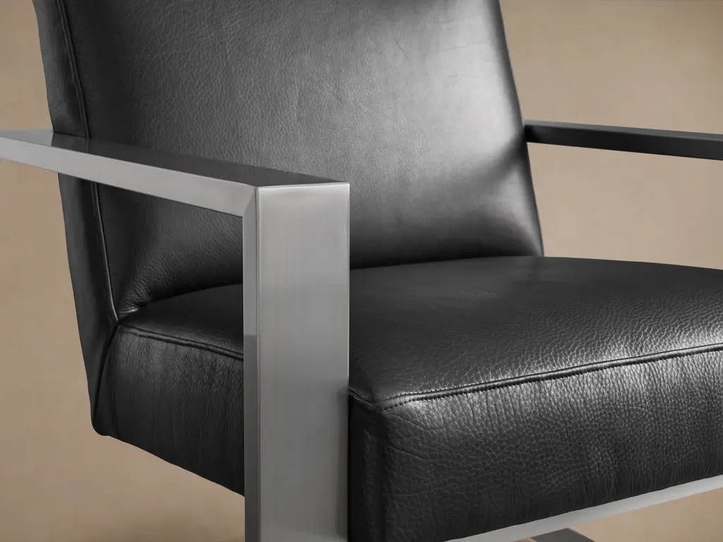 Blending polished stainless steel and soft leather, our Sabina Chair brings a pop of thoughtful design into any conversation area. Featuring an angular floating frame paired with expertly tailored upholstery around sumptuous cushions, Sabina creates a beautiful mixed-material accent piece that will fit seamlessly into your home’s aesthetic.