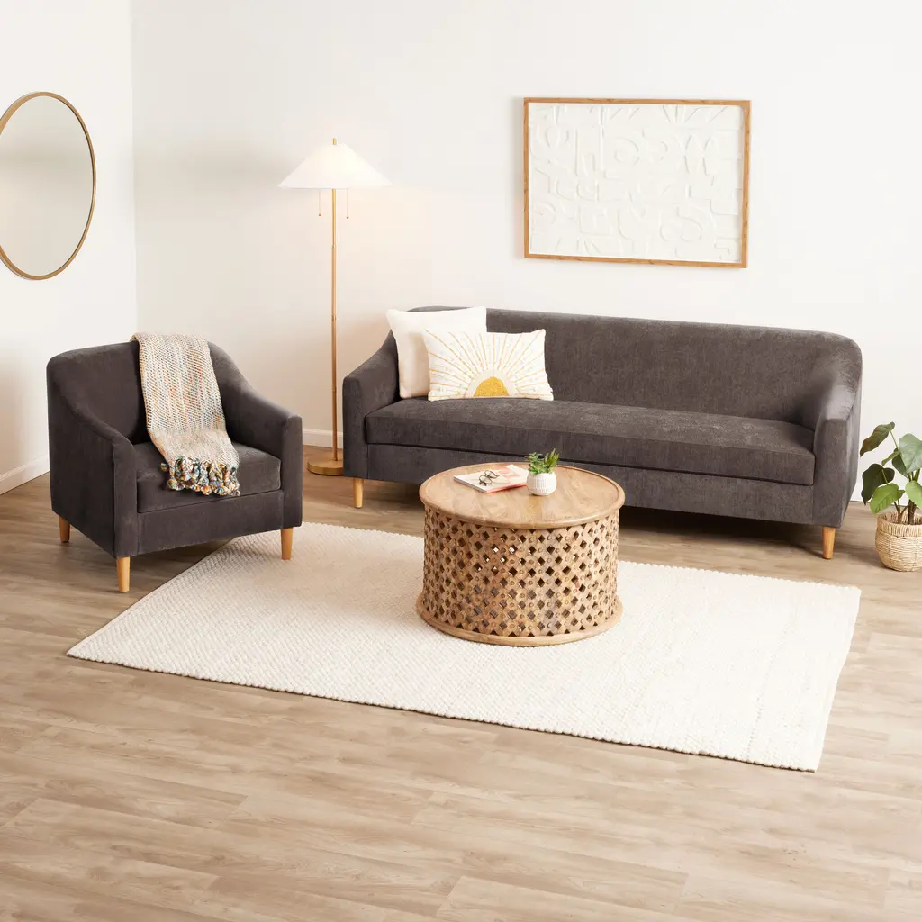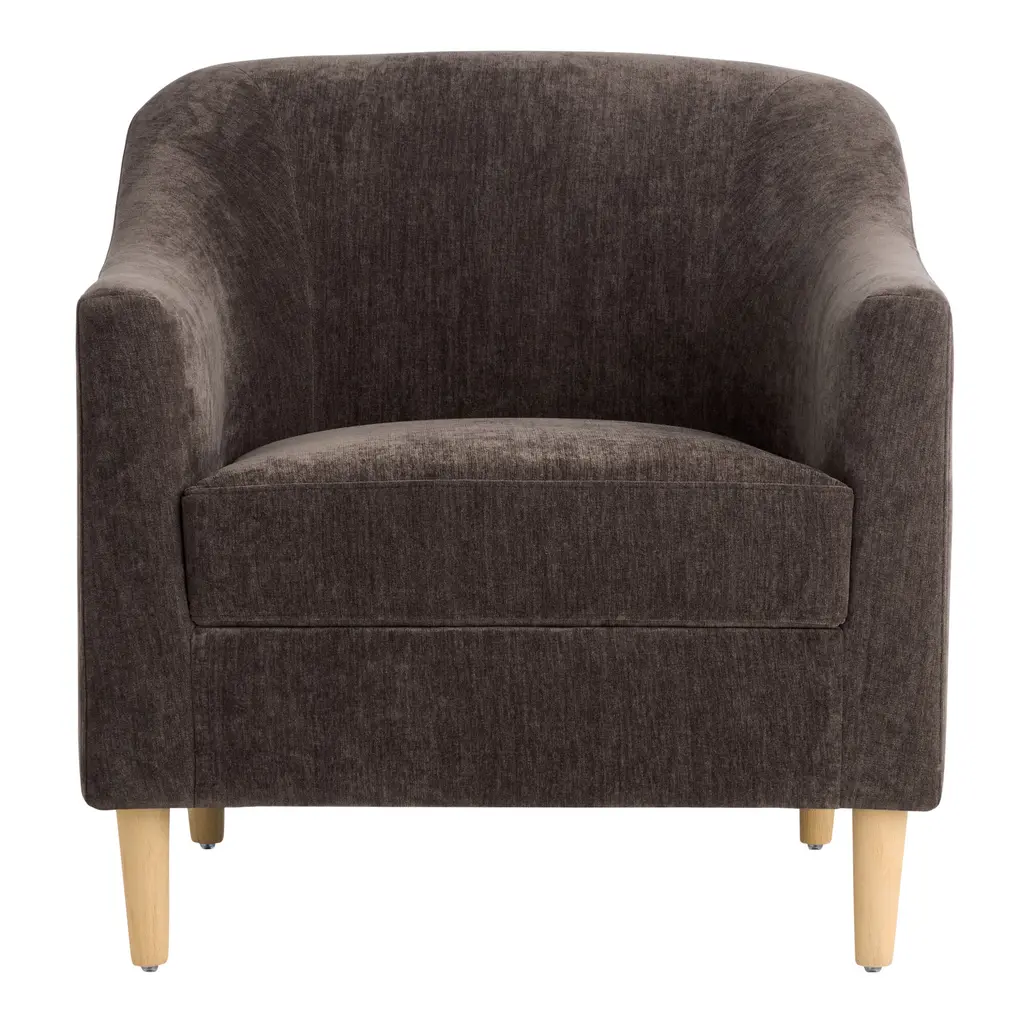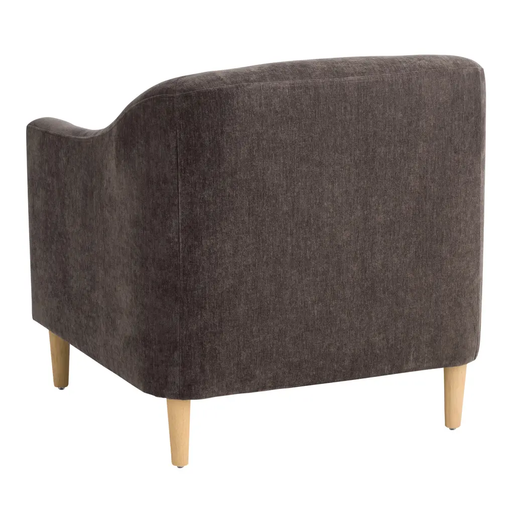 Featuring a slope-arm frame tailored with premium mink-gray chenille upholstery, our Sacha accent chair pulls a retro silhouette into the modern era. A graceful lounge chair in an on-trend neutral hue, its padded back, curving sides, and sumptuous seat are snug, firm, and covered in velvety fabric. Perched on tapered wood legs in a light natural hue, this cute and cozy seat dresses up your living room with high-quality style at an unbeatable value.