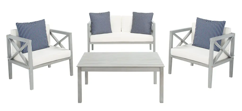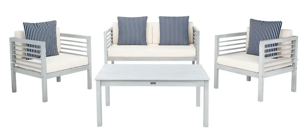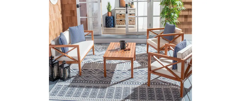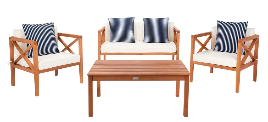 Safavieh Nunzio Indoor-Outdoor 4 Piece Set, Natural/beige/navy/white