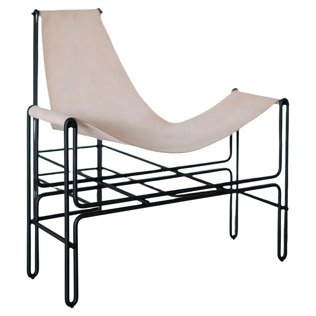 An airy silhouette defined by neat geometric profiles and enhanced by a glistening chromed finish characterizes this lounge chair as a contemporary furniture gem. Flexible cold-cured polyurethane foam ensures a truly comfortable seating experience gaining sartorial luxury thanks to the braided off-white leather sealing the curved shell. Please contact the Concierge for available finishing variants and fireproof version.