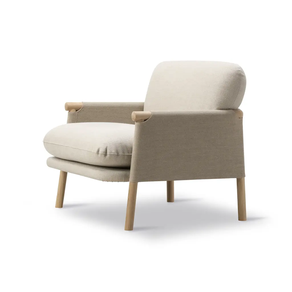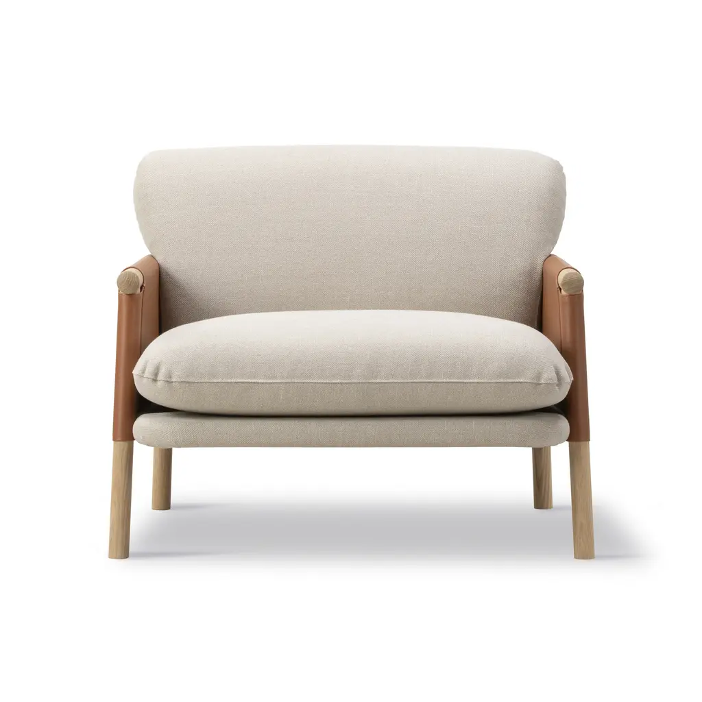 The Savannah Club Chair from Fredericia Furniture seamlessly blends structured design with plush comfort. Its saddle leather frame elegantly wraps around soft seat and back cushions, all supported by a solid wooden core. Two smaller inner cushions on the armrests provide a cocoon-like comfort, enhancing relaxation. This chair reflects a heritage of craftsmanship and a passion for natural materials, highlighted by fine woodworking and premium leather for a sophisticated and timeless addition to any space. Highlights