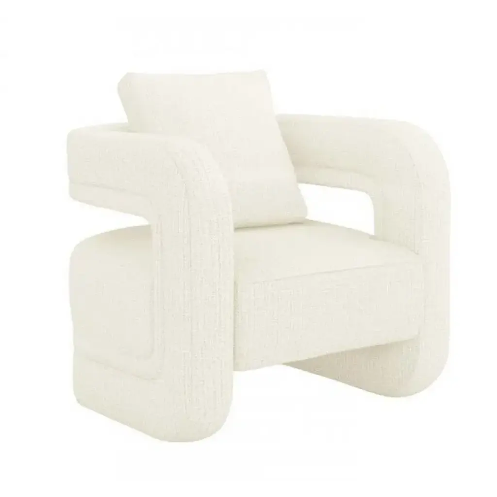 The Conversation-sparking Scillia Chair makes a statement. All hardwood frame with interlocking construction. Advanced comfort spring suspension. Loose seat and back cushions with premium polyurethane foam and 100% polyester fiber.