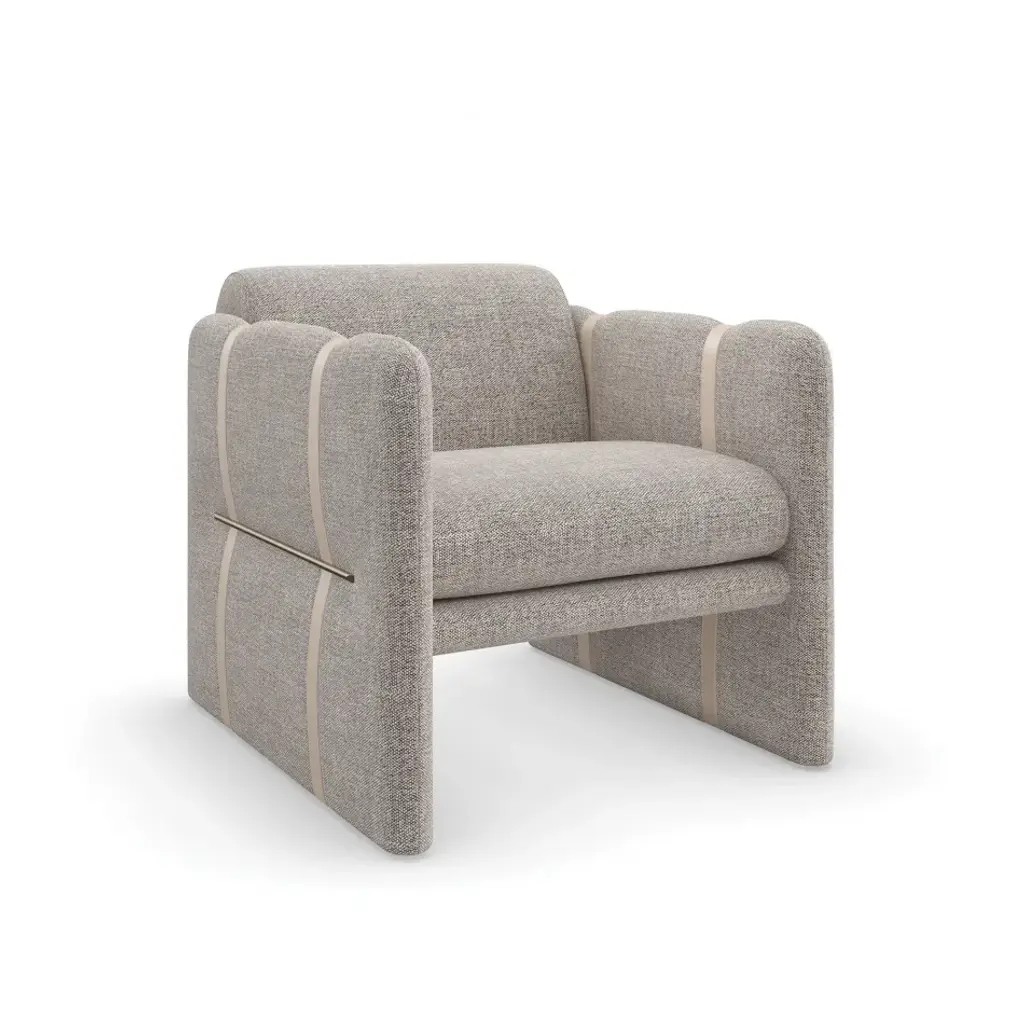 The Conversation-sparking Scillia Chair makes a statement. All hardwood frame with interlocking construction. Advanced comfort spring suspension. Loose seat and back cushions with premium polyurethane foam and 100% polyester fiber.