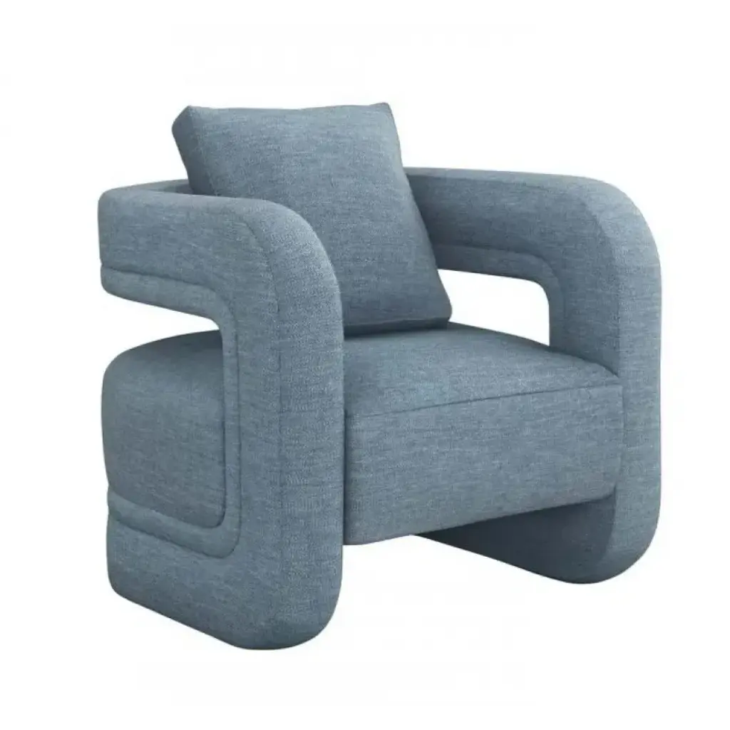 The Conversation-sparking Scillia Chair makes a statement. All hardwood frame with interlocking construction. Advanced comfort spring suspension. Loose seat and back cushions with premium polyurethane foam and 100% polyester fiber.