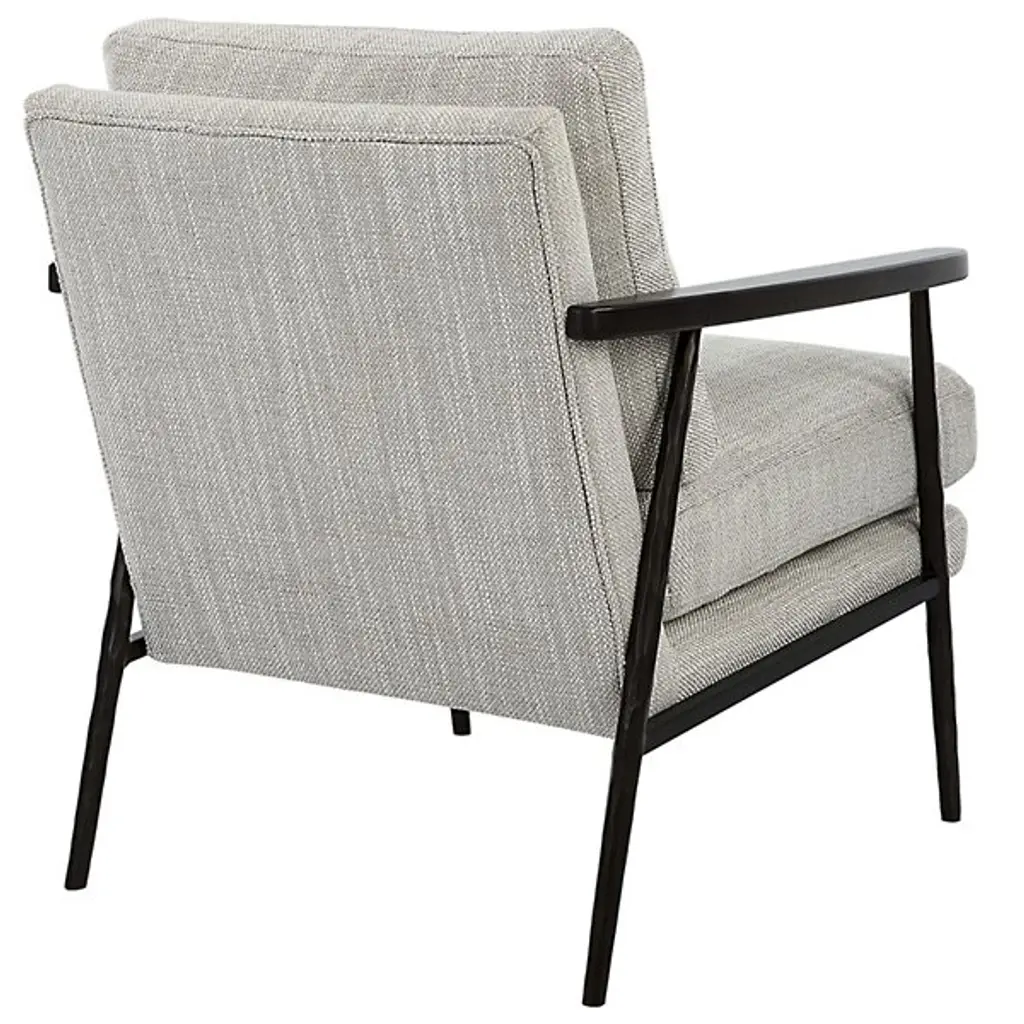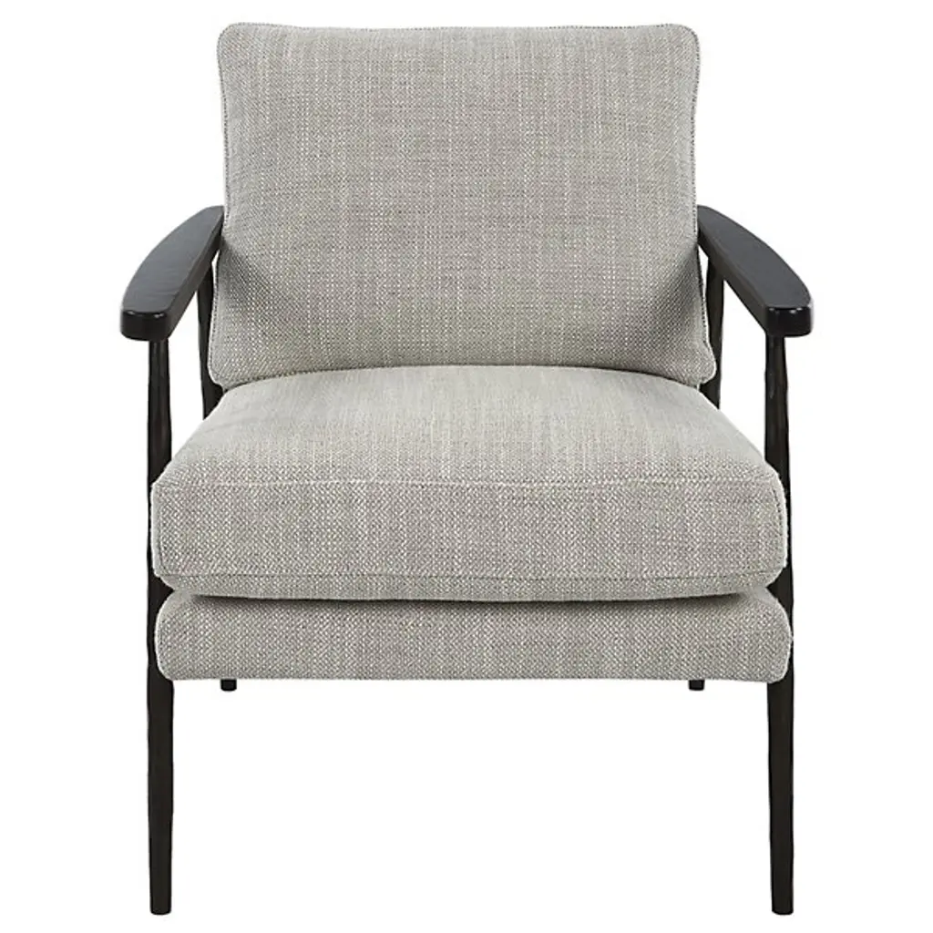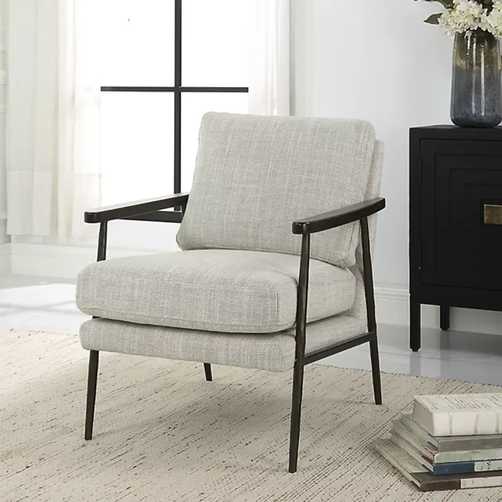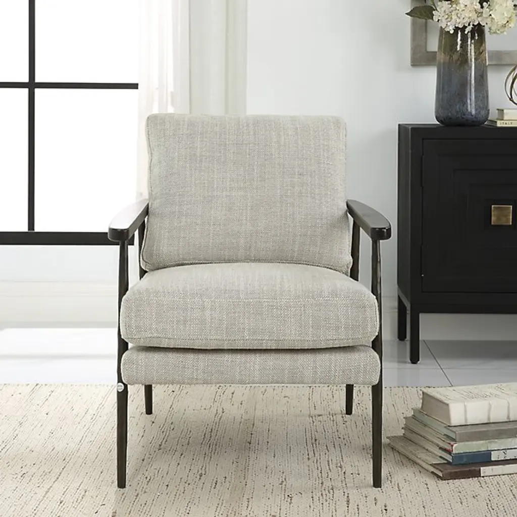 The Sebastian Lounge Chair from Uttermost exudes comfort and style. This lounge chair seamlessly blends contemporary aesthetics with a touch of mid-century modern flair. Crafted with attention to detail, Sebastian features a fusion of materials contributing to its sophisticated appearance. Your chair boasts solid oak arms, and its frame is made with sturdy cast iron. Sebastian’s upholstery is a blend of 82% polyester for a refined and tailored look, 16% acrylic, and 2% wool, contributing to its luxurious feel.