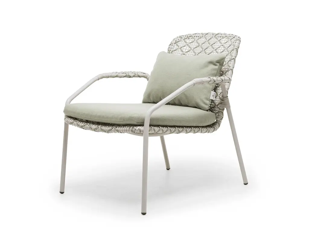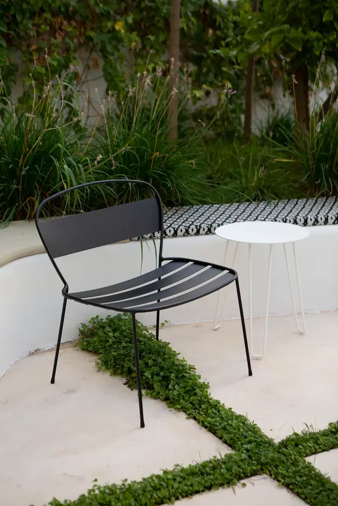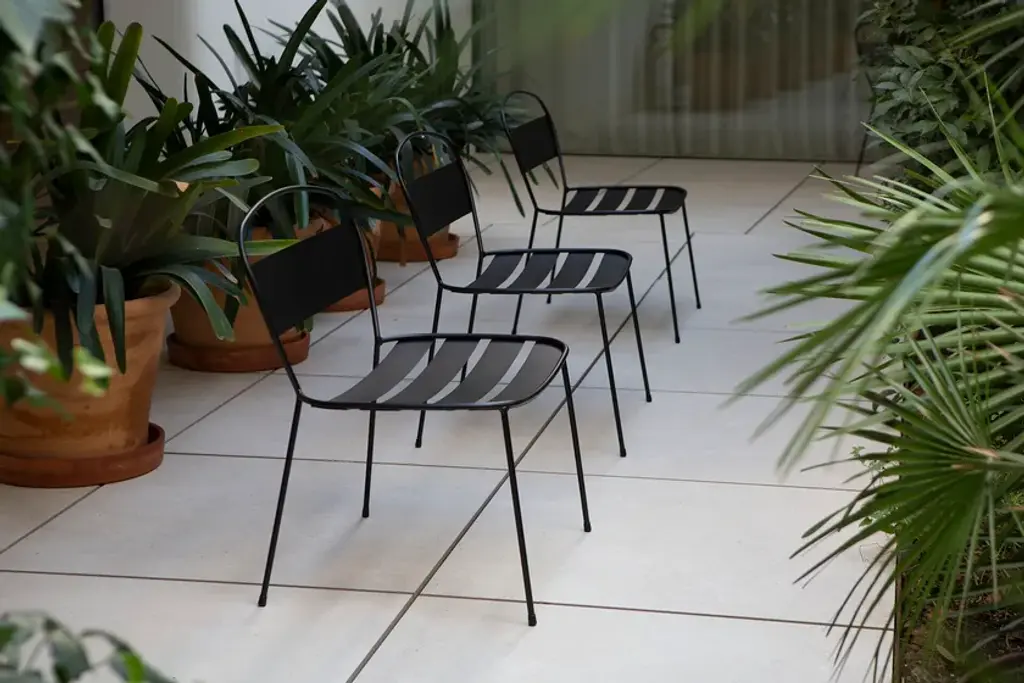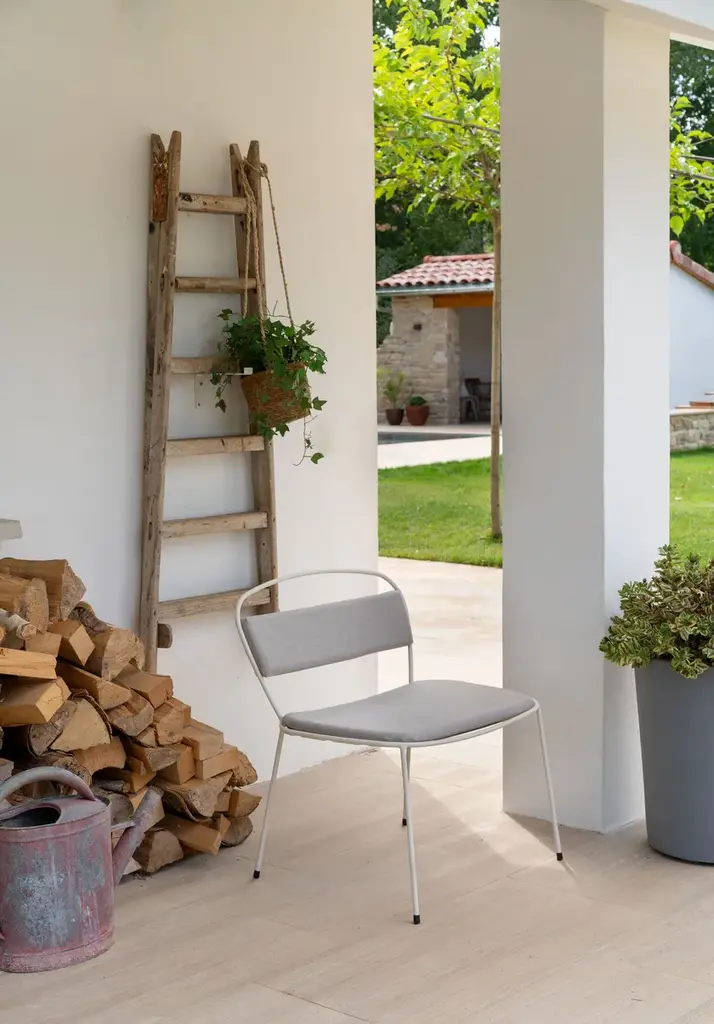 Sedna is a garden chair made of powder-coated galvanised steel.The Sedna collection is inspired by a female deity of the sea, whose meaning is ‘mother of the sea’. Sedna is a versatile collection, capable to adapt to multiple spaces and projects, both indoors and outdoors. Its delicated shapes create an elegant and simple silhouette, made of a galvanized steel frame and water-resistant upholstery.