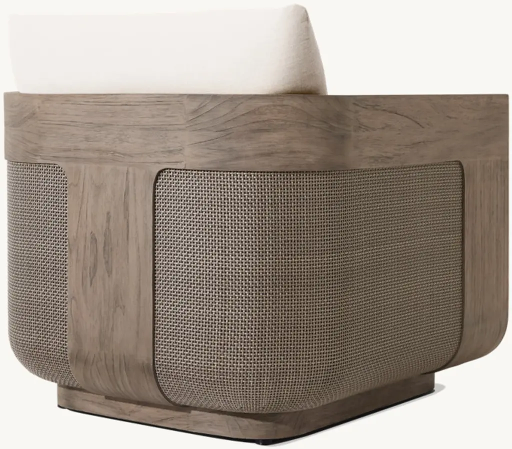 Inspired by the bold geometric forms of modern architecture, Sedona Cane by French designer Arthur Gentil is characterized by textural panels of handwoven all-weather cane. Handcrafted of sustainably harvested premium solid teak, the graphic frame and ultra-thick cushion appear to float atop a recessed base while maintaining a strong, grounded presence. Frame is guaranteed for life. ALSO AVAILABLE IN ALUMINUMSHOP THE ENTIRE COLLECTION