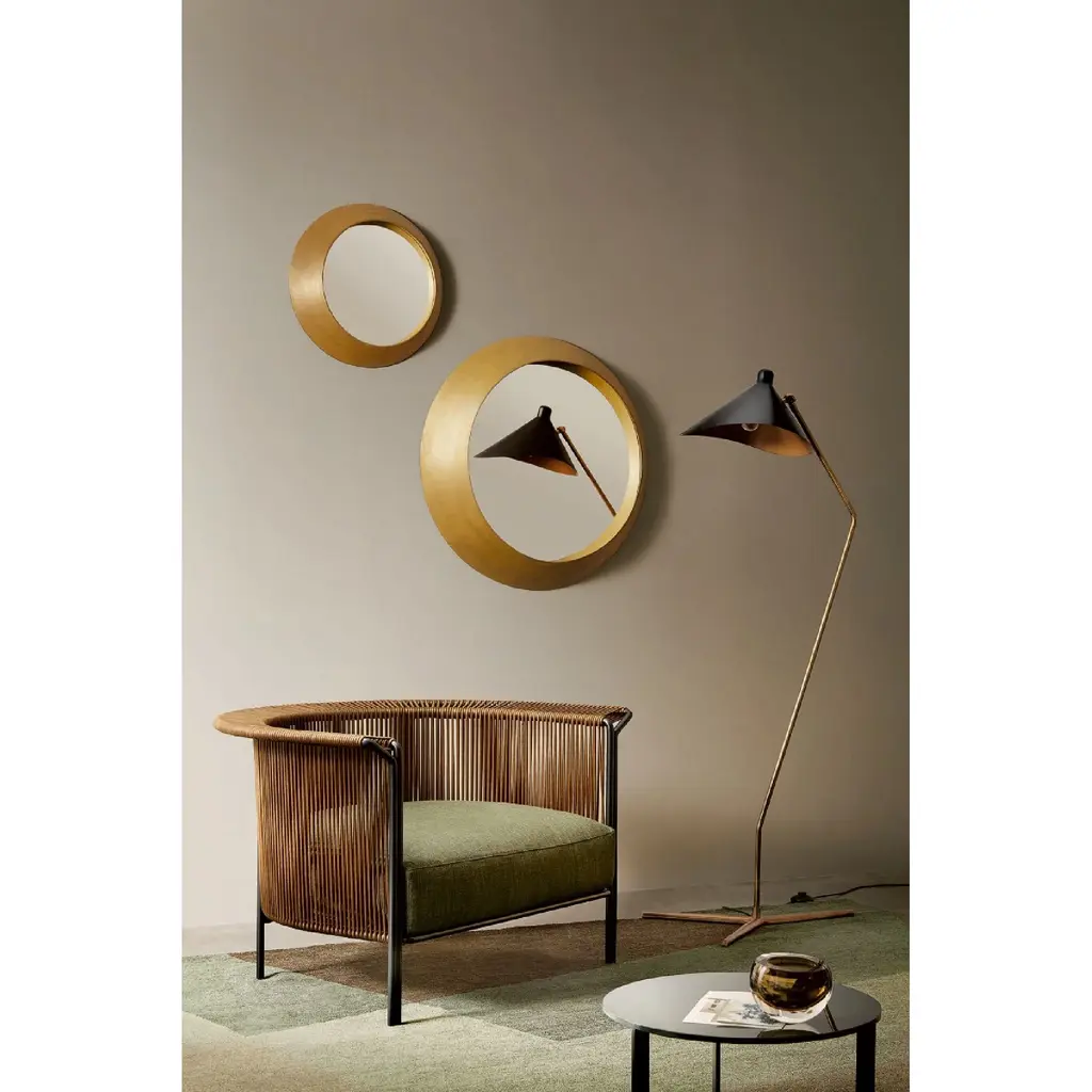 The Semi-Circular Lounge Chair by Lema Alton has a bold, sculptural quality created by its semi-circular metal structure, which accommodates the clean lines of the backrest, made by hand from over 200 metres of aged natural hide cord. Also available with the backrest in dark brown waxed cotton cord. A sophisticated contrast of styles is created between the bold external lines and the cosy, soft seat pad, which guarantees maximum comfort and is available with a fabric or leather covering. Alton is protected by registration on the EU's Design Programme.