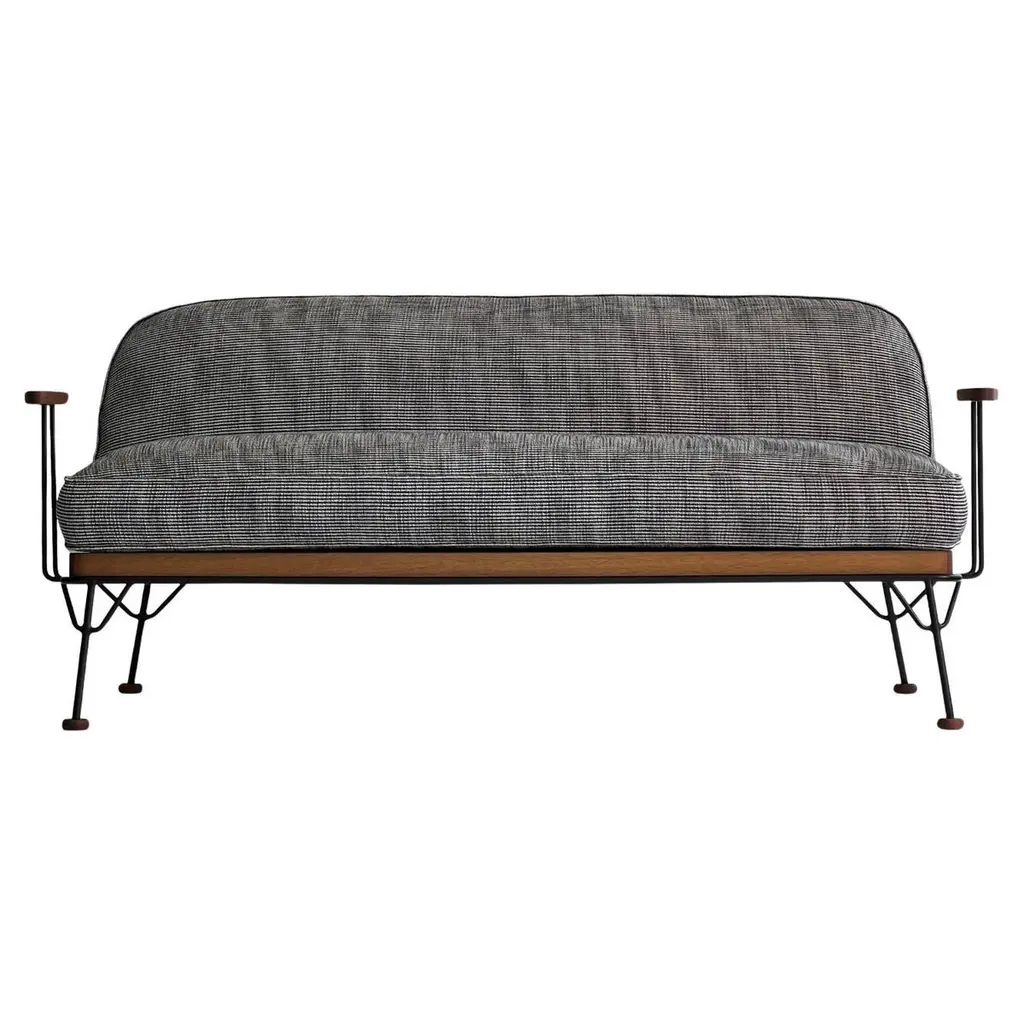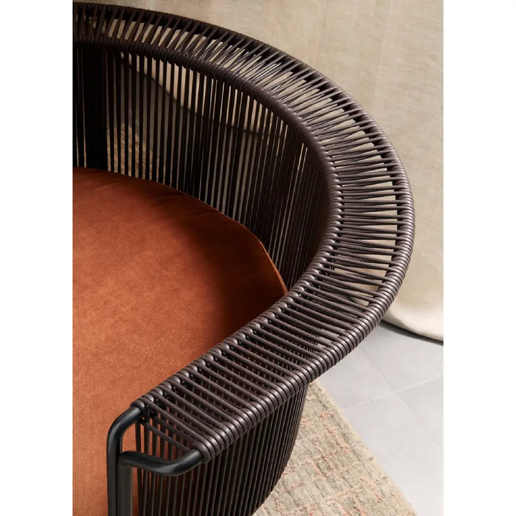 The Semi-Circular Lounge Chair by Lema Alton has a bold, sculptural quality created by its semi-circular metal structure, which accommodates the clean lines of the backrest, made by hand from over 200 metres of aged natural hide cord. Also available with the backrest in dark brown waxed cotton cord. A sophisticated contrast of styles is created between the bold external lines and the cosy, soft seat pad, which guarantees maximum comfort and is available with a fabric or leather covering. Alton is protected by registration on the EU's Design Programme.