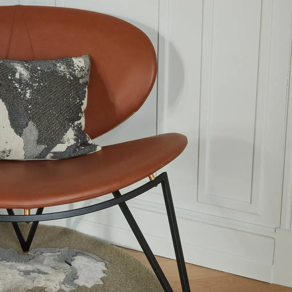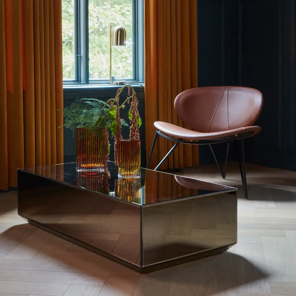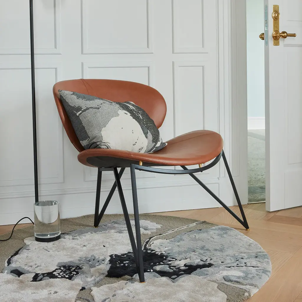 Semper lounge chair is designed by the creative blacksmith, Nicklas Bang Christensen. A masculine family of chairs that works with a sharp geometry in a striking contrast to their softness and comfort. A sculptural design that draws the eye and occupies the room in which it is placed. Semper is the perfect item to place as a piece of art in the corner of your office or in a stylish pair next to the living room table for your guests. The lounge chair is made for leaning back, stopping time for a minute and reflecting on what has been accomplished so far. Nicklas is known from his appearance on the Danish TV-show “Danmarks næste klassiker", which brought him great success in furniture design. We are honoured to work with him on the Semper collection which is made in Italy and is available in black, cognac and java brown in the finest leather from Camo Leathers.