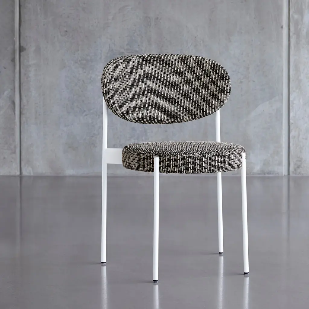 Verner Panton€™s elegant multi-purpose chair looks nothing like typical stacking seating. First introduced by the Danish master more than 50 years ago in 1967, the chair boasts a sturdy but small footprint with its reedy steel frame. In a choice of metal finishes€”black, white, brass€”Series 430 combines a suave appeal with exceptional comfort via the generously cushioned backrest and seat.