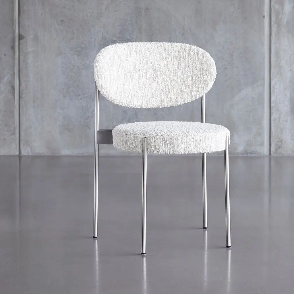 Verner Panton€™s elegant multi-purpose chair looks nothing like typical stacking seating. First introduced by the Danish master more than 50 years ago in 1967, the chair boasts a sturdy but small footprint with its reedy steel frame. In a choice of metal finishes€”black, white, brass€”Series 430 combines a suave appeal with exceptional comfort via the generously cushioned backrest and seat.