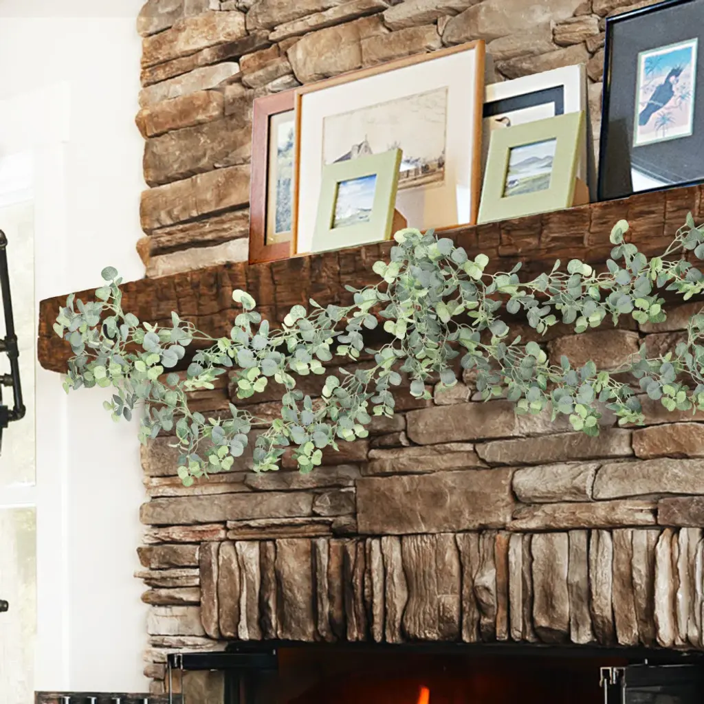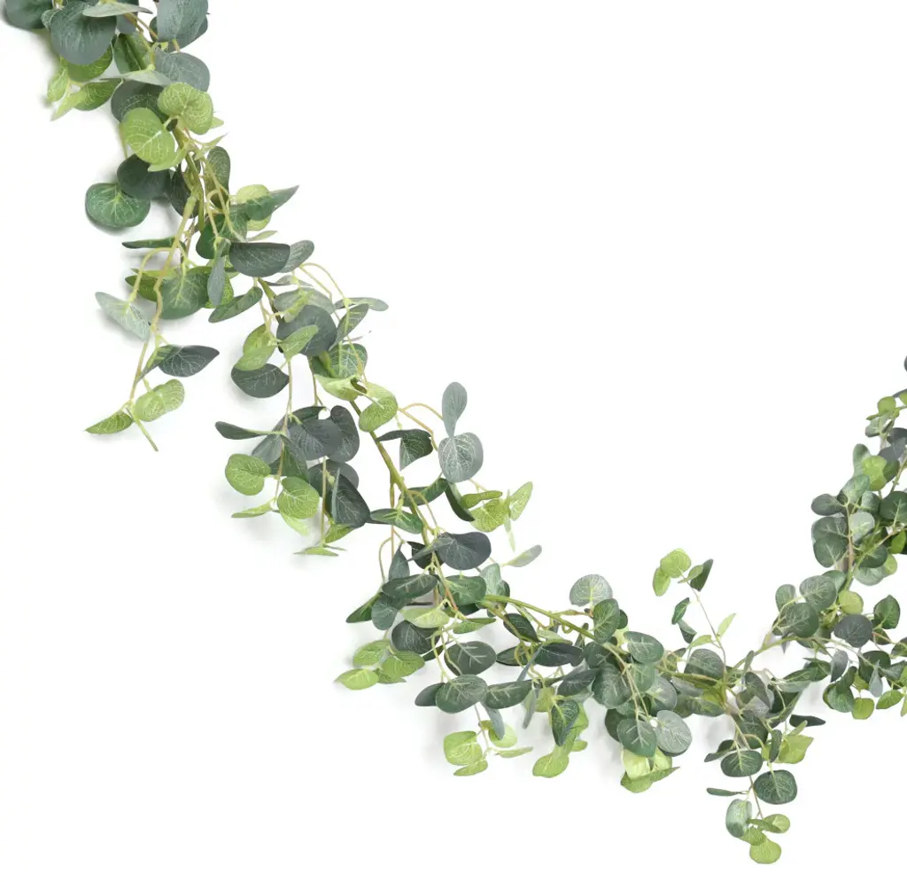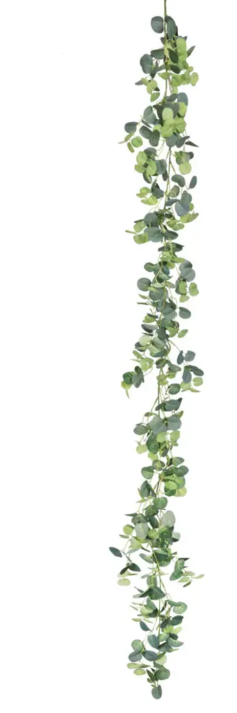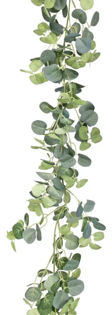 Charming and realistic, this gorgeous eucalyptus garland is versatile for any display setting - mantels, tabletops, chairs, walls and more. Hang from the ceiling, wrap around arches and columns, or arrange with other plants and floral displays. Perfect accent for home, weddings and special events! Its realistic and fresh look is eye-catching and hard to miss! Forever fresh, no maintenance or hassle. Features: • 72" L x 6" W x 6" DP • Realistic and detailed eucalyptus leaves and color variegation • Bendable & flexible garland branch, perfect for hanging as home decor or event decor • Dangling, hanging, lightweight • Best for indoor or covered outdoor usage • Product may ship compressed. Primping of branches or leaves may be required to match the image shown. Images represent actual product, but please understand color may vary slightly due to differences in computer monitor color displays, photographic lighting, or image enhancement.