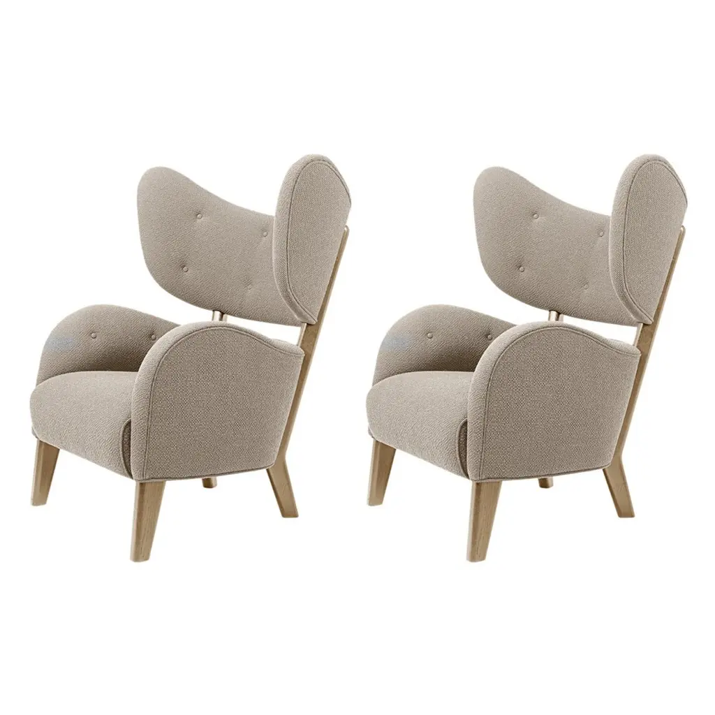 Set of 2 beige raf simons vidar 3 natural oak my own lounge chairs by Lassen.Dimensions: W 88 x D 83 x H 102 cm. Materials: Textile.Flemming Lassen's iconic armchair from 1938 was originally only made in a single edition. First, the then controversial, forward-looking armchair was exhibited at The Copenhagen Cabinetmakers’ Guild Competition and later it became the favorite chair in the Lassen family home - hence its name. It was launched in connection with the chair's 80th anniversary and now it is also available in an alluring heavy, black version. By Lassen is a Danish design brand focused on iconic designs created by Mogens and Flemming Lassen, founded by Lassens’ relatives in 2008. Brothers Mogens (1901-1987) and Flemming (1902-1984) Lassen are known as two of Denmark’s greatest architects and designers. Both were renowned pioneers of Danish functionalism and modernist architecture, honoured with numerous prestigious medals and awards. Headed by Mogens Lassen’s grandson Søren Lassen, By Lassen carries on the brothers’ design philosophy by manufacturing their iconic designs as well as products by other designers that complement the Lassen’s functionalist style. The company’s mission is to continue the tradition of timelessness, functionality and quality, and to introduce the Lassen’s design heritage to new generations.