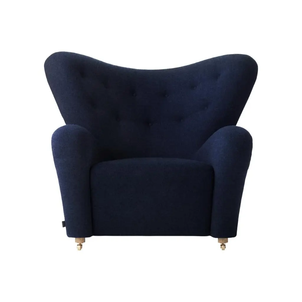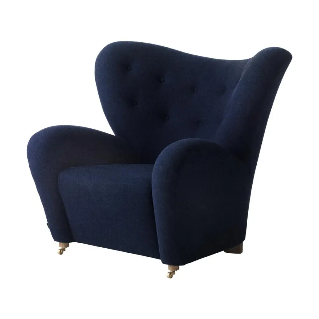 Set of 2 blue hallingdal the tired man lounge chair by LassenDimensions: W 102 x D 87 x H 88 cm Materials: SheepskinFlemming Lassen designed the overstuffed easy chair, The Tired Man, for The Copenhagen Cabinetmakers’ Guild Competition in 1935. It is characterised by organic, bearlike shapes and then as now it created a sensation with its curved form and voluminous armrests. Sitting in the chair should, in Flemming Lassen’s own ords, be ”as warm and safe as a polar bear cub in the arms of its mother in the middle of the ice cap”. The family man Flemming Lassen valued intimate relationships - with its warm exterior, The Tired Man invokes domestic cosiness and socialising by candlelight.By Lassen is a Danish design brand focused on iconic designs created by Mogens and Flemming Lassen, founded by Lassens’ relatives in 2008. Brothers Mogens (1901-1987) and Flemming (1902-1984) Lassen are known as two of Denmark’s greatest architects and designers. Both were renowned pioneers of Danish functionalism and modernist architecture, honoured with numerous prestigious medals and awards. Headed by Mogens Lassen’s grandson Søren Lassen, by Lassen carries on the brothers’ design philosophy by manufacturing their iconic designs as well as products by other designers that complement the Lassen’s functionalist style. The company’s mission is to continue the tradition of timelessness, functionality and quality, and to introduce the Lassen’s design heritage to new generations.