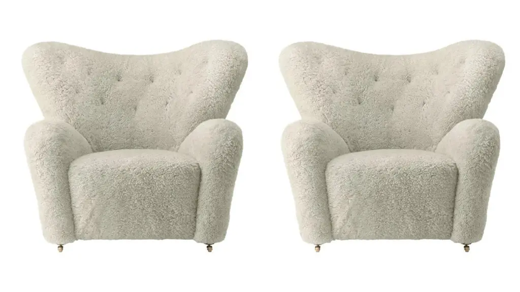 Set of 2 green tea sheepskin The Tired Man Lounge chair by LassenDimensions: W 102 x D 87 x H 88 cm Materials: SheepskinFlemming Lassen designed the overstuffed easy chair, The Tired Man, for The Copenhagen Cabinetmakers’ Guild Competition in 1935. It is characterised by organic, bearlike shapes and then as now it created a sensation with its curved form and voluminous armrests. Sitting in the chair should, in Flemming Lassen’s own ords, be ”as warm and safe as a polar bear cub in the arms of its mother in the middle of the ice cap”. The family man Flemming Lassen valued intimate relationships - with its warm exterior, The Tired Man invokes domestic cosiness and socialising by candlelight.By Lassen is a Danish design brand focused on iconic designs created by Mogens and Flemming Lassen, founded by Lassens’ relatives in 2008. Brothers Mogens (1901-1987) and Flemming (1902-1984) Lassen are known as two of Denmark’s greatest architects and designers. Both were renowned pioneers of Danish functionalism and modernist architecture, honoured with numerous prestigious medals and awards. Headed by Mogens Lassen’s grandson Søren Lassen, By Lassen carries on the brothers’ design philosophy by manufacturing their iconic designs as well as products by other designers that complement the Lassen’s functionalist style. The company’s mission is to continue the tradition of timelessness, functionality and quality, and to introduce the Lassen’s design heritage to new generations.