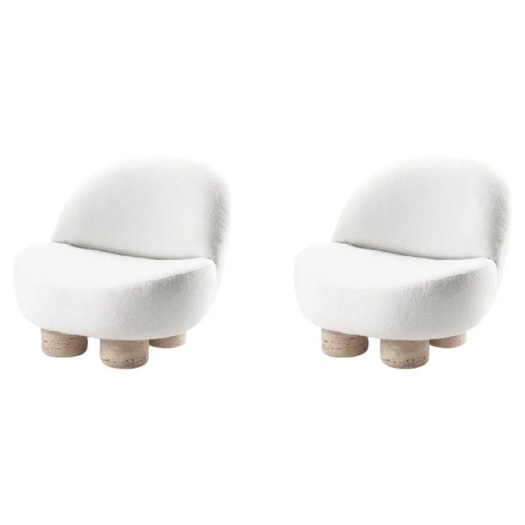 Set of 2 Hygge lounge chair by CollectorMaterials: structure in solid oak wood.Upholstered in Pierre Frey fabric.Legs: TravertinoDimensions: W 75 x D 70 x H 77 cmSH 42 cm Hygge collection is inspired by contemporary architecture in Portugal that Speaks of its Romanesque past by honoring the antiques geometries, such as the arch and the column. Saccal Design House chose to reflect these elements of the past in the collection but in a contemporary way.The Collector brand aims to be part of the daily life by fusing furniture to our home routine and lifestyle, that’s why we’ve designed our pieces with the intention to embrace diverse styles and to blend in inside anycontemporary setting.Described by our motto: “built to fit a good IDEA.”, this wide range of product typologies were designed to work in diverse layers of importance. It can work as a center piece of the house, with strong personality or just complementing the background by gently blending in. The result is a clean-lined furnishing collection that can easily be customized to work specifically and according to each unique need, reflecting essentially our traditional methods of furniture manufacturing with accurate Industrial Production methods.We strive to achieve the best quality possible by selecting the best materials and by the constant development of our production processes and manufacturing partnerships.
