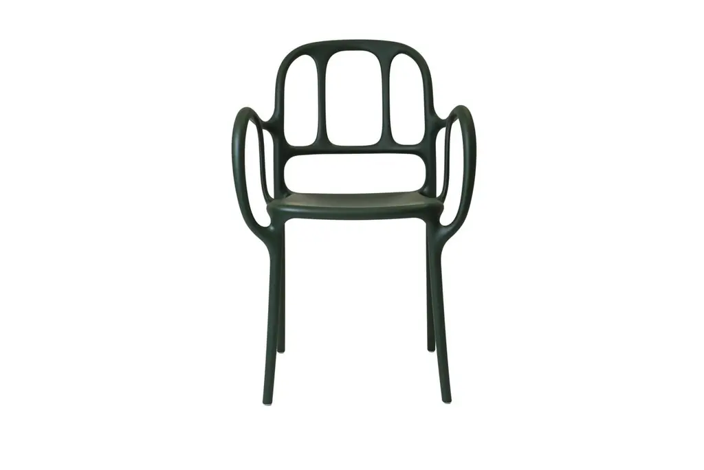 Milà is an expressive and light collection that is very rich in movement, inspired by the façade of Gaudí’s famous Batlló house and based on the forms and the princi- ples of Catalan modernism: elastic and dynamic.The chair is truly elegant and comfortable with or without cushions, and it is a warm and inviting object for everyone.The collection also includes a table that is available in different dimensions. The ver- satile table features an angled tubular steel frame with die-cast details and a range of different tops.CHAIRMilà chair is in air-moulded polypropylene with glass fibre added, with silky touch finish. Suitable for outdoor use.It’s also available with seat or seat and back upholstered with cushions in expanded polyurethane covered in fabric. Only for indoor use.