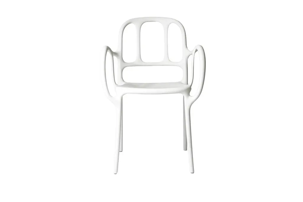 Milà is an expressive and light collection that is very rich in movement, inspired by the façade of Gaudí’s famous Batlló house and based on the forms and the princi- ples of Catalan modernism: elastic and dynamic.The chair is truly elegant and comfortable with or without cushions, and it is a warm and inviting object for everyone.The collection also includes a table that is available in different dimensions. The ver- satile table features an angled tubular steel frame with die-cast details and a range of different tops.CHAIRMilà chair is in air-moulded polypropylene with glass fibre added, with silky touch finish. Suitable for outdoor use.It’s also available with seat or seat and back upholstered with cushions in expanded polyurethane covered in fabric. Only for indoor use.